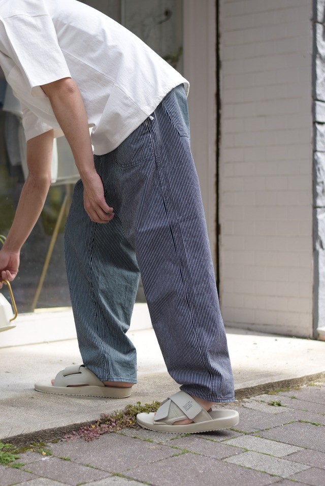 【ORDINARY FITS(オーディナリーフィッツ)】から、 わたしも楽しみにしていた 「RANCH PANTS(ランチパンツ)」が到着しました! 牧場(=RANCH)作業用のパンツをデザインソースにした、 サイドジップとユニークなテーパードシルエットが特徴の"ランチパンツ" 1950年代のランチパンツを、 オーディナリーフィッツの目線でアップデートされたモデルです。 今回、生地には薄手ながらも 高密度でハリ・コシのある素材感のヒッコリー生地が使用されています。 自然なムラ感とやわらかさが特徴で、とってもはきやすいんですよね…! サイドジップ仕様は、特にメンズの皆様にとっては新鮮かもしれませんが、 前がすっきり見えますし、デザインのアクセントにも◎ ウエスト後部はイージー仕様なので、いい感じにフィットしてくれるはずです。 ベルトループもあるので、もちろんベルトもお使いいただけますよ。 カラーは、キナリベース(OFF)と シックなネイビーベース(NVY)の なんとも悩ましい2色展開・・・ ヒッコリー好きとしては見逃せなかったコチラ・・・ わたしもNVYのカラーを自分用に購入しました♡ なんと言ってもこの生地と、 ほどよくゆるい、独特なシルエットが非常に気に入っています。 何にでも合わせやすく、コーディネートが決まる1本・・・ メンズ・ウィメンズ問わず、 ぜひこの機会に、ワードローブに加えてくださいね。 素材: cotton 100% 生産国:日本 サイズ: 0 /ウエスト65-85cm, ワタリ37cm, 股上31cm, 股下67.5cm, 裾幅22.5cm 1 /ウエスト70-90cm, ワタリ38cm, 股上32cm, 股下70cm, 裾幅23.5cm 2 /ウエスト75-95cm, ワタリ40cm, 股上33cm, 股下71.5cm, 裾幅24.5cm ※メンズモデル(身長175cm)着用サイズ:1 (NVY/OFF) ※ウィメンズモデル(身長166cm)着用サイズ:1 (OFF) ※ウィメンズモデル(身長155cm)着用サイズ:0 (NVY)