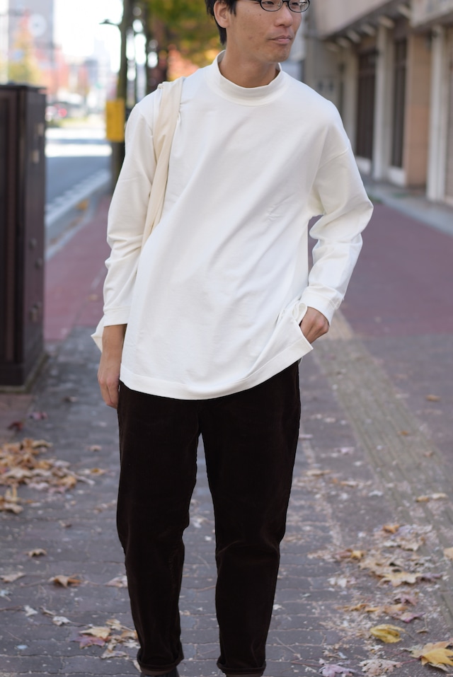 【CURLY(カーリー)】より 魅力的なプルオーバーが到着しております。 生地には、ハイゲージミニ裏毛素材が使用されています。 CURLYの中でもわたしのだいすきな素材で、あるとついつい選びがち♡ 細番手コンパクトスピニング糸を使用したハイゲージの裏毛です。 コンパクトスピニング糸は、 改良されたリング精紡機で糸を紡ぐ、新しい紡績技術で生まれた糸。 糸の繊維は完全に伸ばされ、互いに平行で、 撚る前に密に配置されているため、 特に3mmを超えると、糸の毛羽立ちが少なく、光沢があるのが特徴です。 編み機は、一般的に裏毛の編み立てには使用しない 36ゲージのハイゲージを使用することで、目面が細かく繊細になります。 また高密度のため、 細番手ながら適度な厚みとキックバックがある上質な生地に仕上がっています。 ほどよくゆとりのあるリラックスシルエットのプルオーバー。 モックネックは、首につかず離れず な 絶妙なフィット感。 インナーとしても着用できるように、 袖口は共地切り替えのカフス仕様にしてあり、 袖丈もほどよい長さに設定にされています。 あえて表側に折り返された裾には、 細かくループの揃ったきれいな裏毛生地が見えて・・・ さりげないディテールデザインにもなりますよね。 ディテールが素晴らしいですし、気温が高い日も多いので、 1枚着としてもしばらく活躍してくれそうですが、 これからの季節、 なんといっても頼もしいインナーとして重宝しそうな1着。 今季のtheaterでは"良いインナー"を、 いつもより多めにセレクトさせていただいています。 外から見える部分が少ないということもあり、 後回しにしがち、適当に選びがちな方もいらっしゃるかもしれませんが、 肌に直接触れるアイテムであり、 季節によっては毎日着用するものであるからこそ、 できるだけクオリティの高いものを選んで着用してほしい・・・ インナー次第で、アウターの見え方もかなり変わってきます。 インナーを制する者、秋冬を制す♡ もちろんこちらも、 ぜひとも持っていてほしい"良いインナー"のひとつ。 メンズ・ウィメンズ問わず、 この機会にぜひワードローブに加えていただけたら嬉しいです。 ★CURLYについてはこちらをどうぞ! http://theater2019.jugem.jp/?eid=309 素材:COTTON 100% 生産国:日本 サイズ: 0/着丈66cm 身幅51cm 裄丈74.5cm 1/着丈69cm 身幅54cm 裄丈78cm 2/着丈72cm 身幅57cm 裄丈81.5cm 3/着丈75cm 身幅60cm 裄丈85cm ※メンズモデル身長175cm着用サイズ:1 ※ウィメンズモデル身長155cm着用サイズ:0