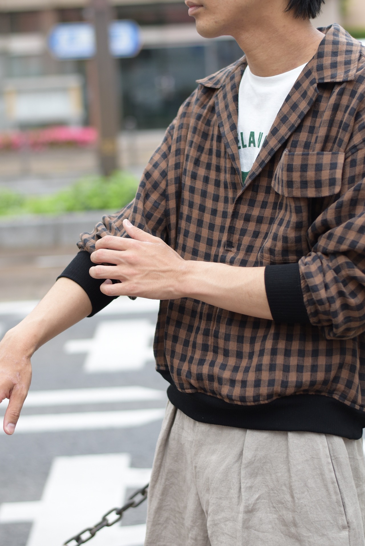 展示会でひとめぼれしたプルオーバーシャツブルゾンがお目見えしています。