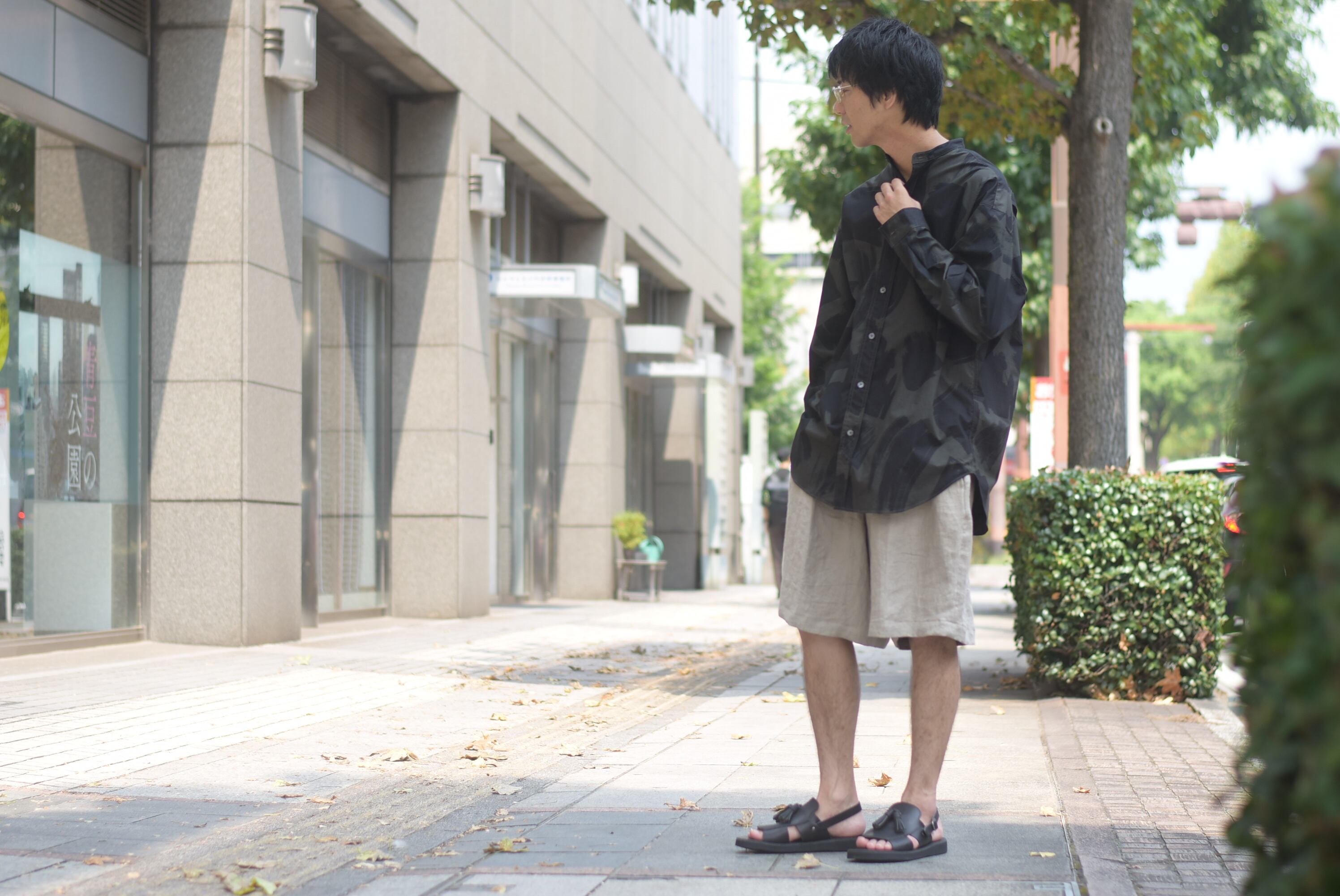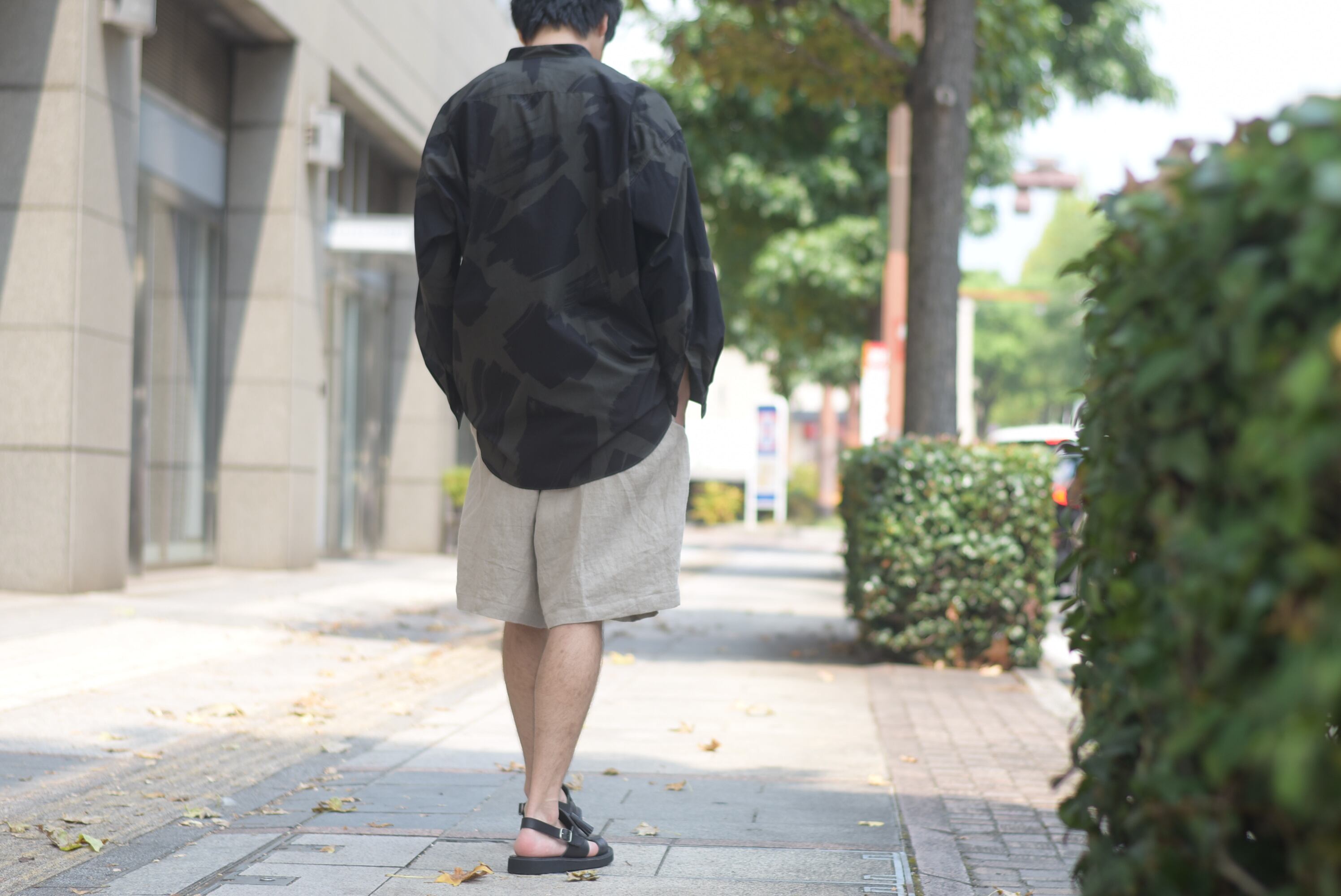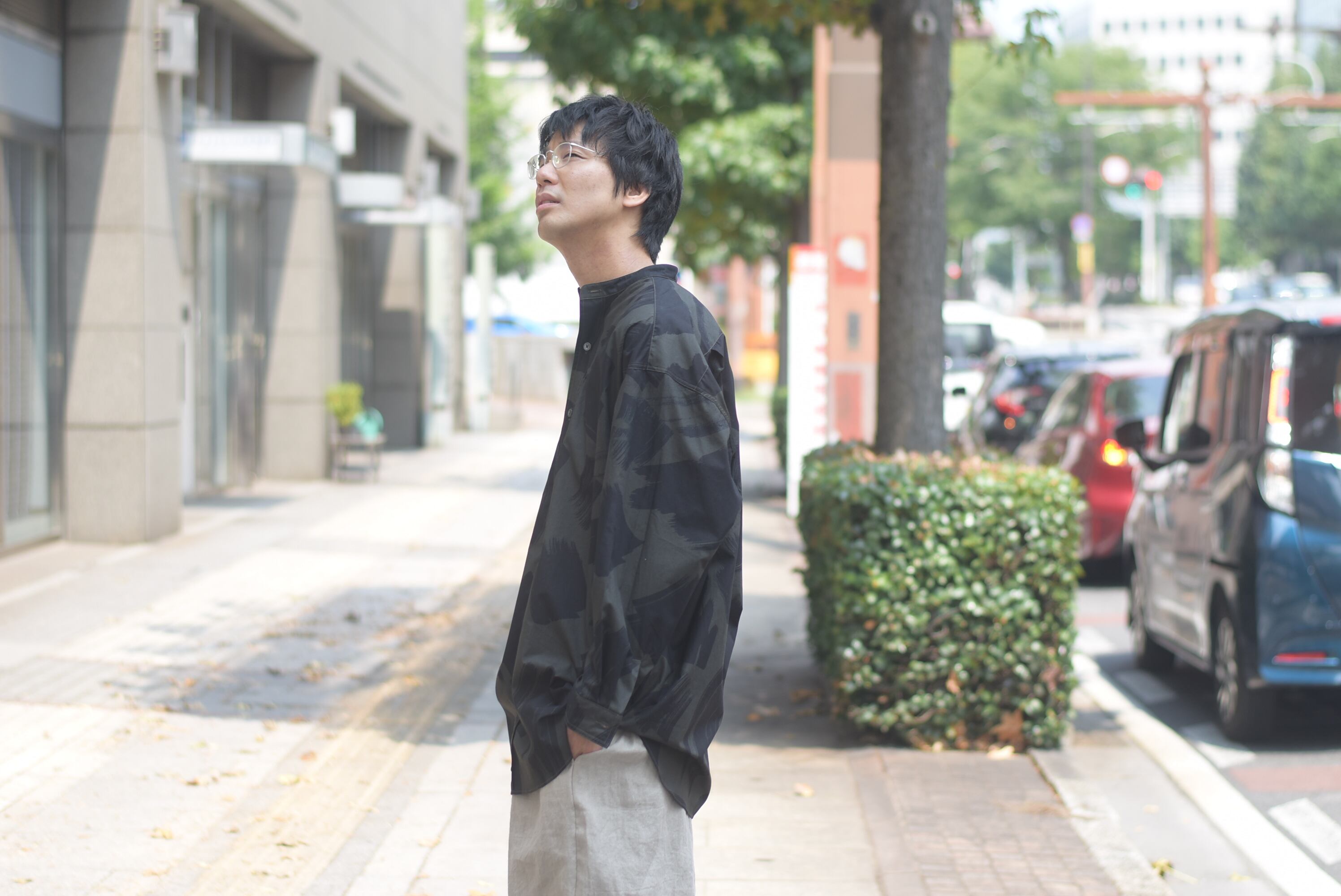 この、ミリタリー感強めのカーキ色ベースにブラックのブラッシュプリント…