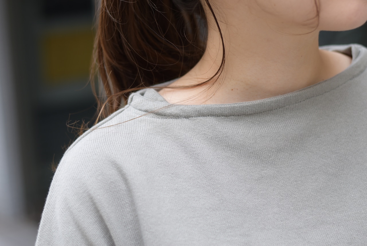 ネック周りにマチの付いたボートネックは