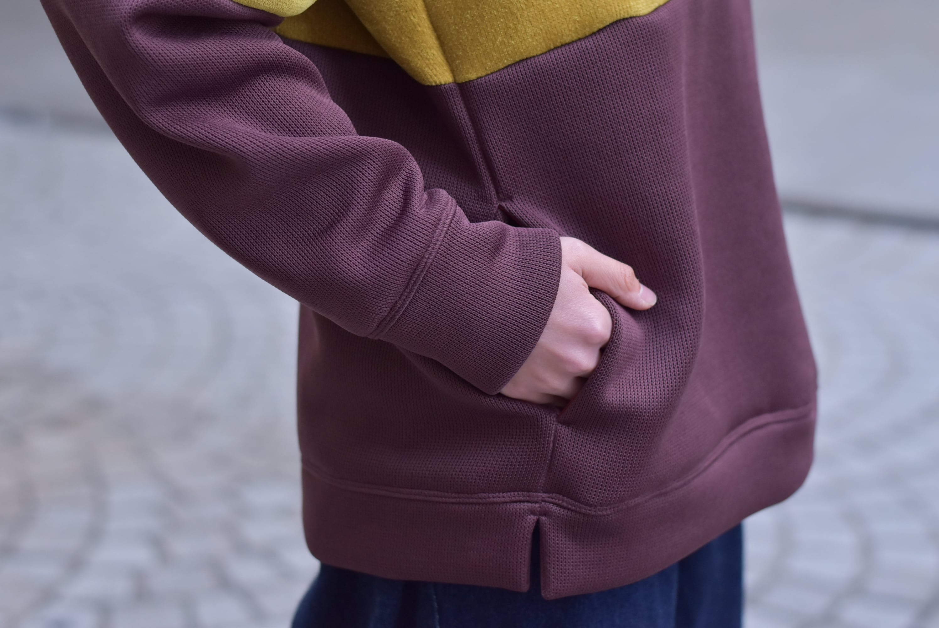 3色を切り替えた、ダブルフェイスジャージー素材の
