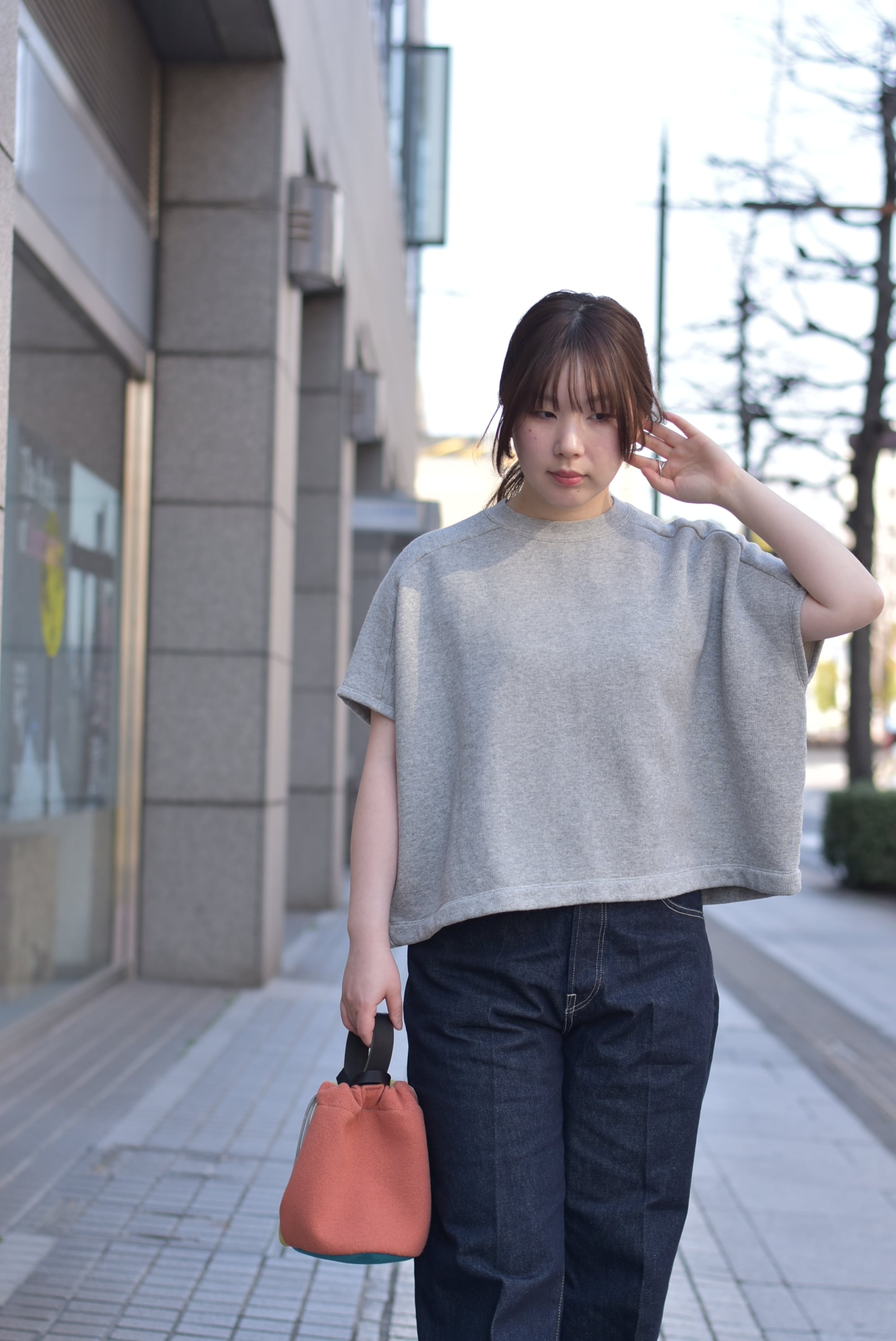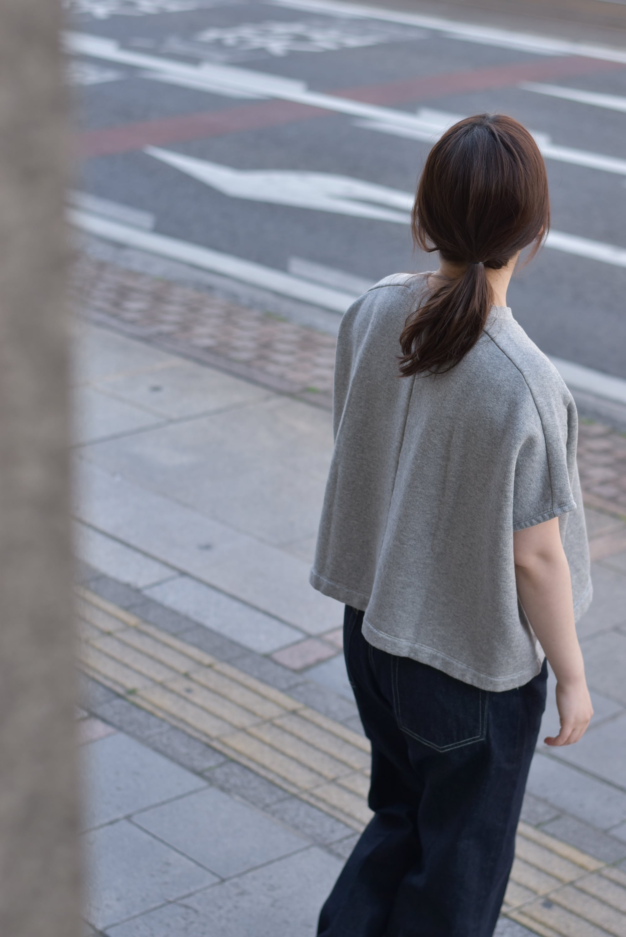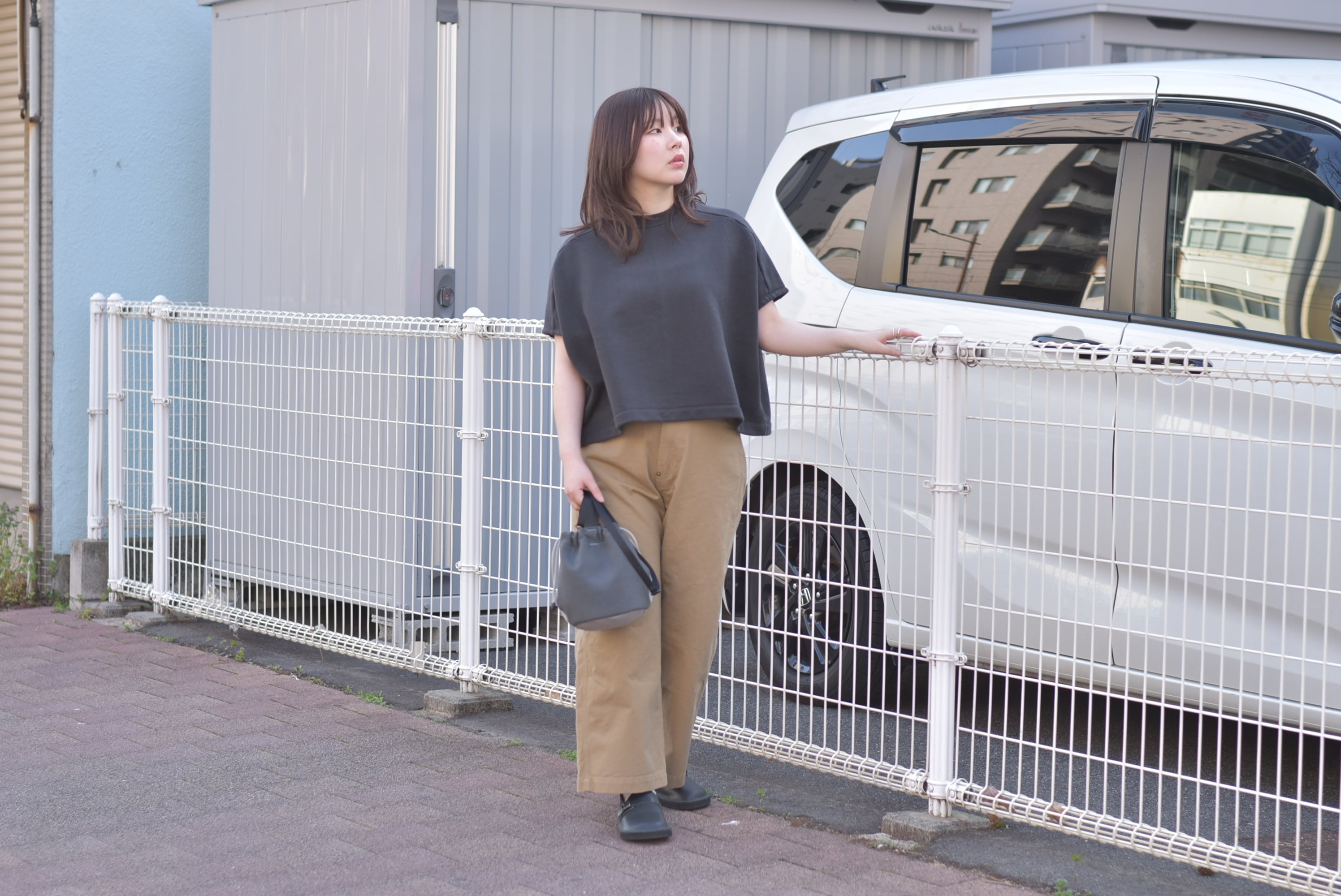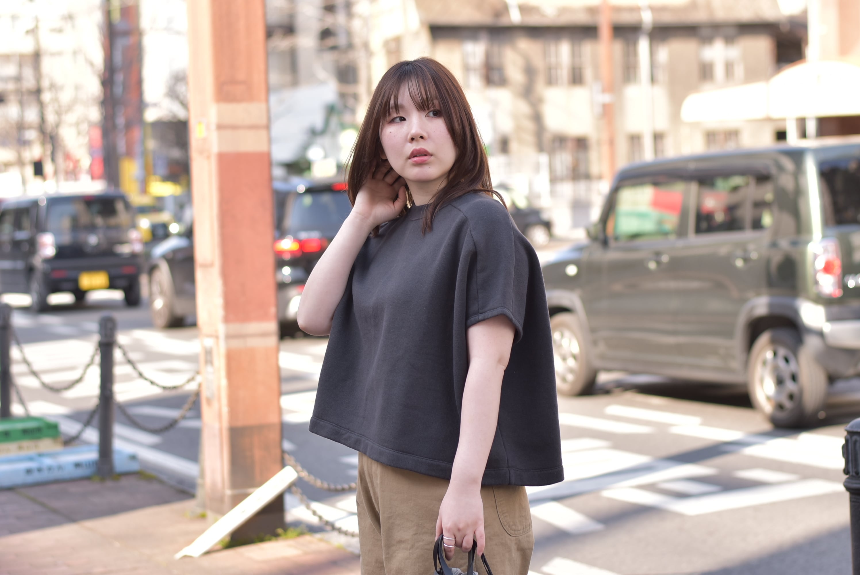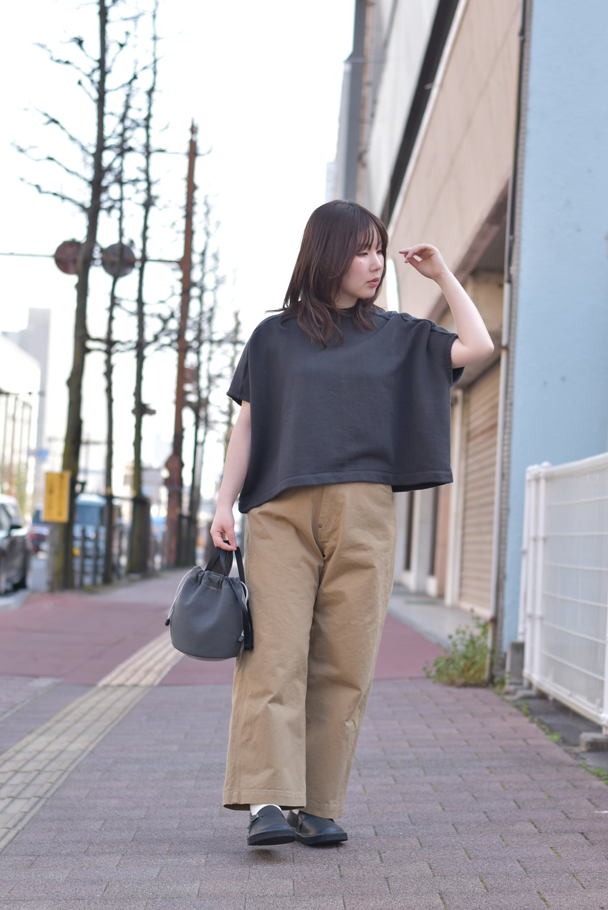 たっぷりした身幅のわりには、着丈はそこまで長くなく、