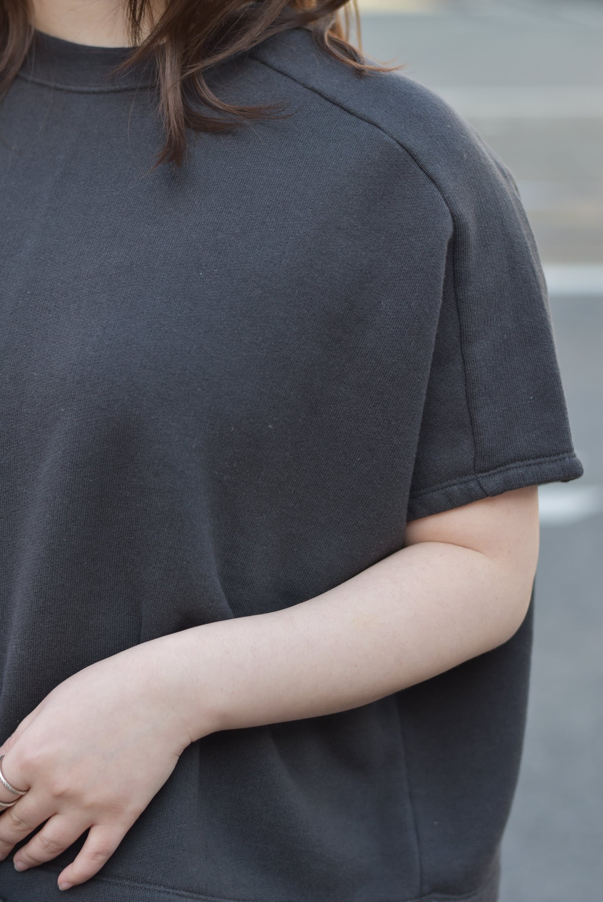肩の落ちたドロップショルダー、
