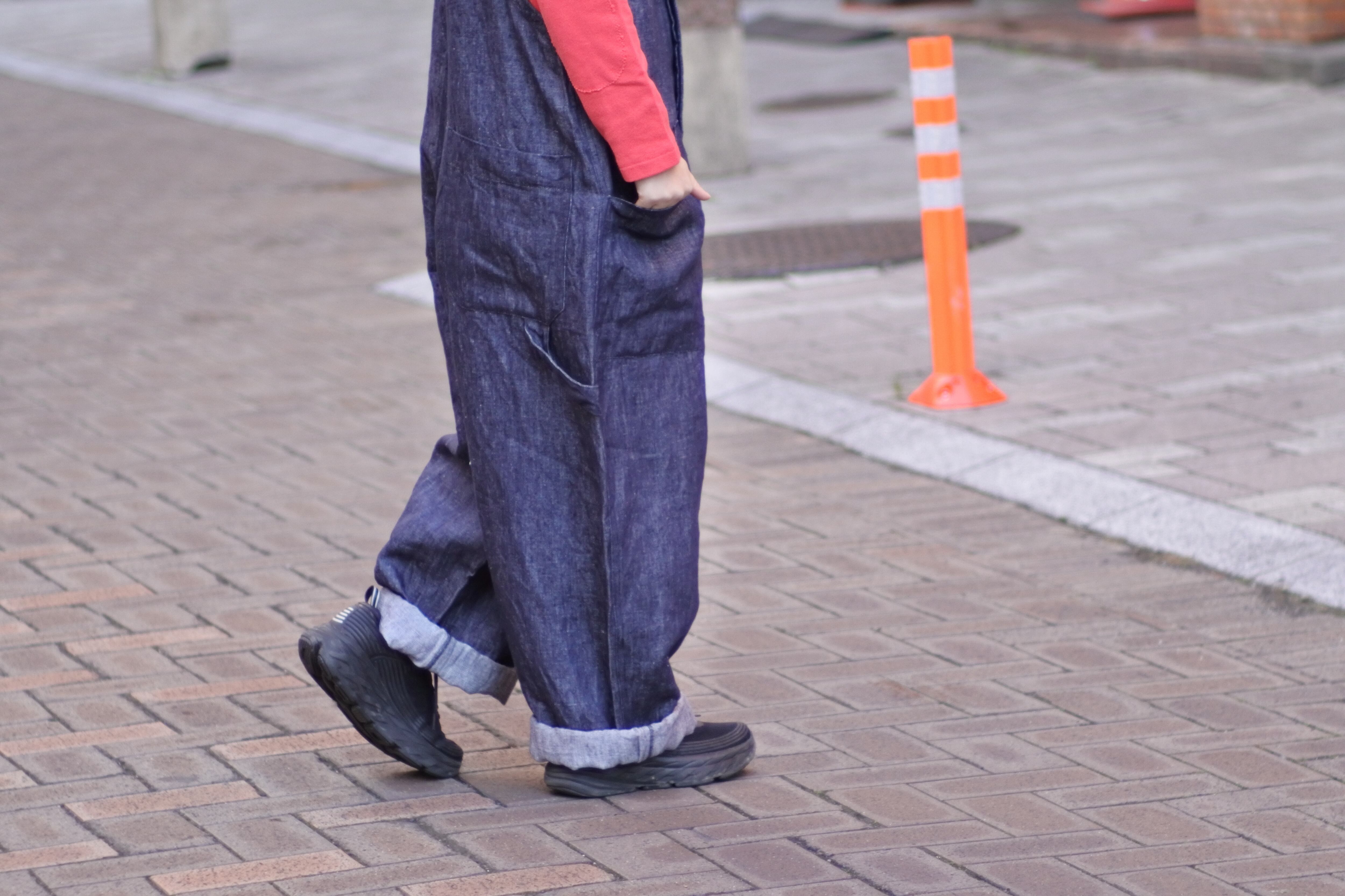 リネン100%のデニムを使用したオーバーオールの到着です。