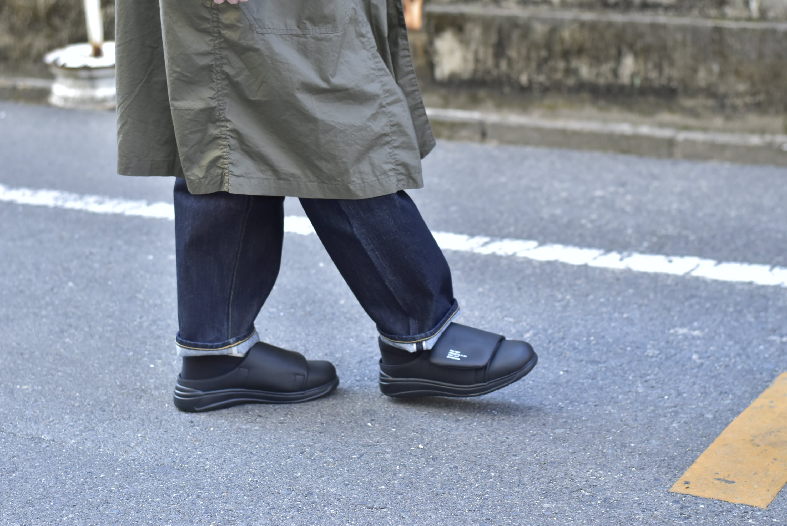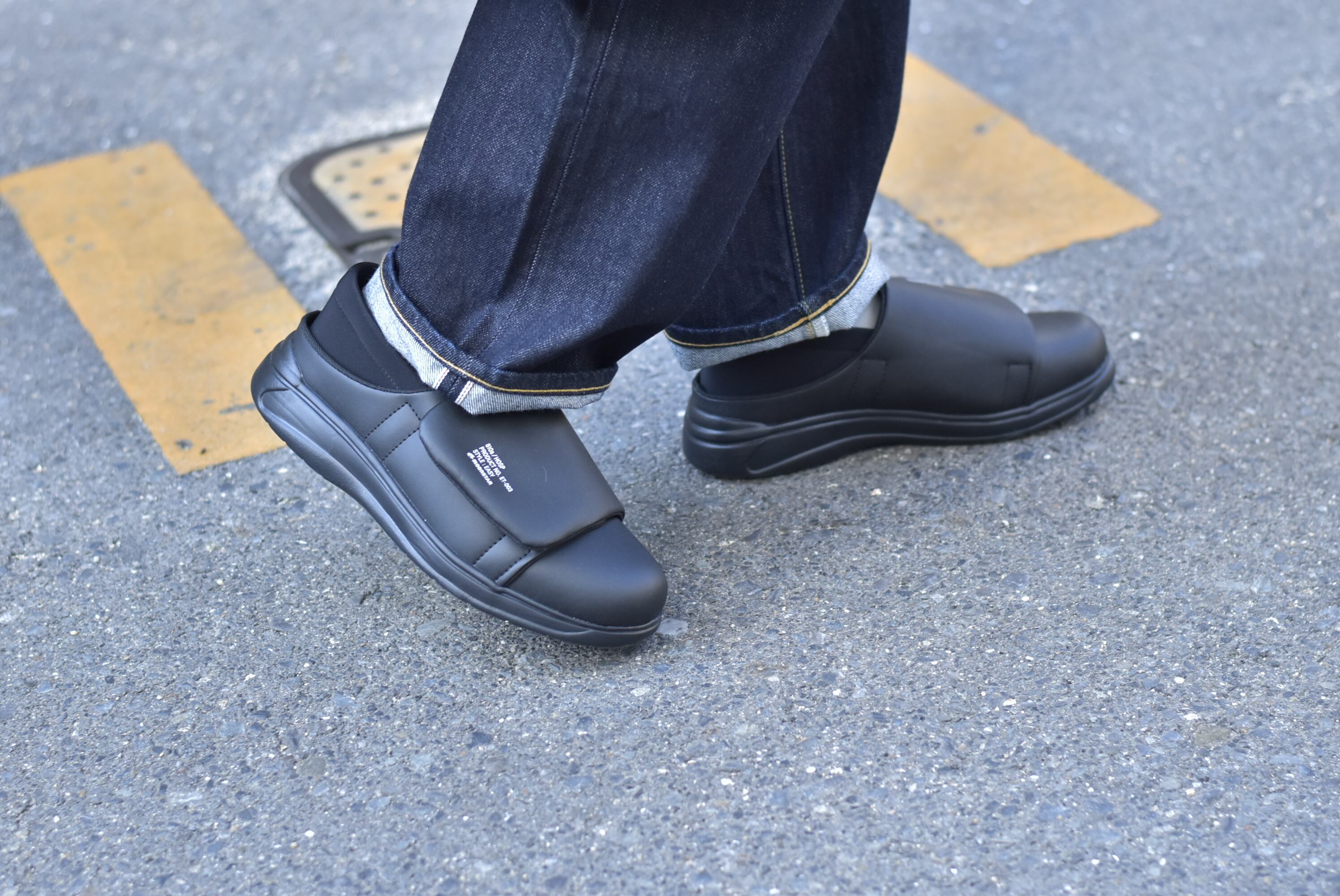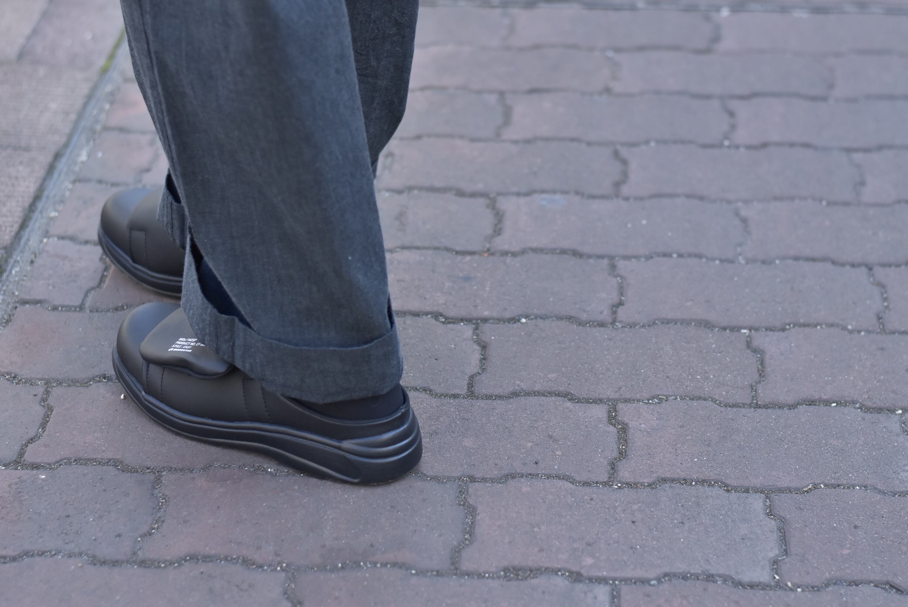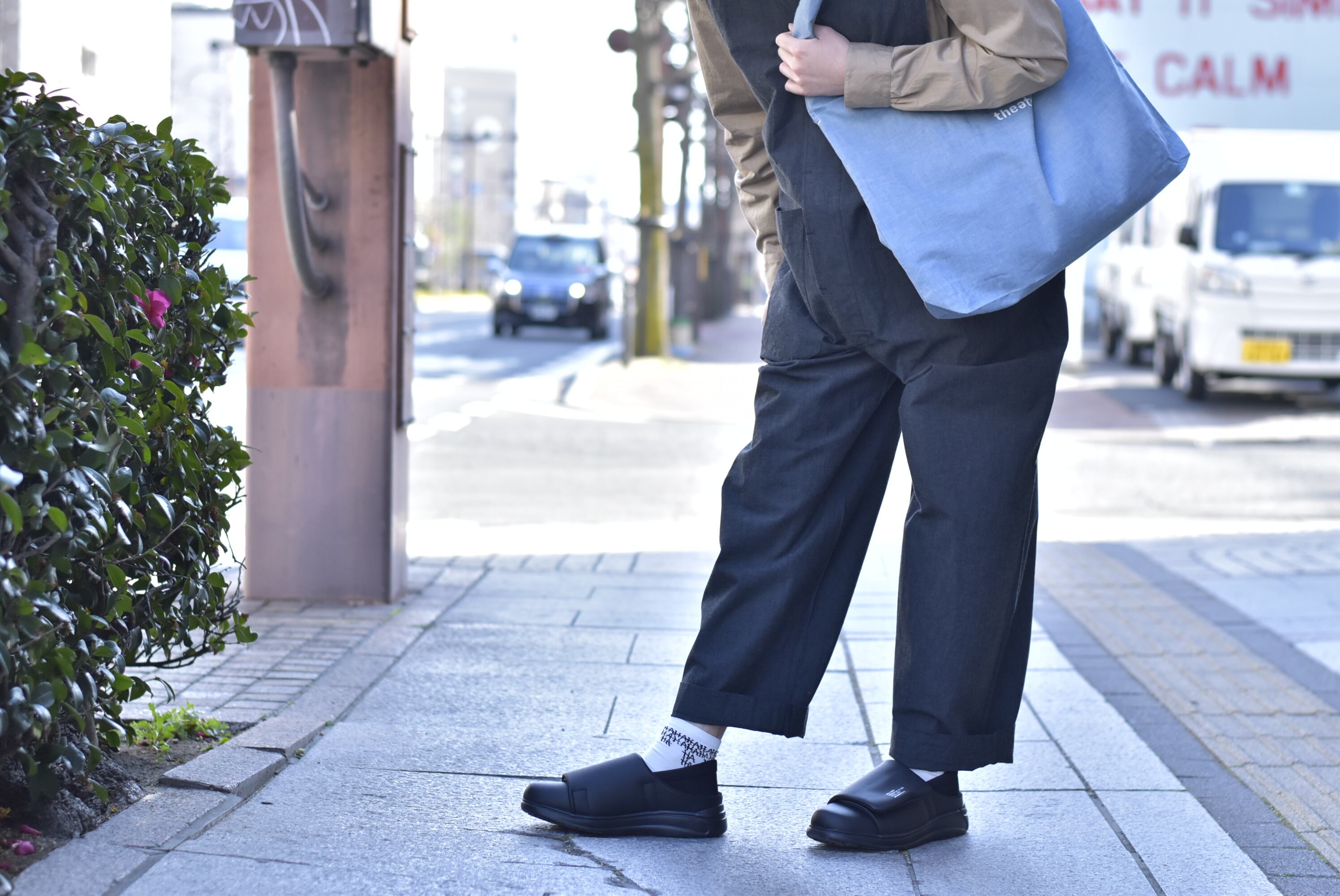 かかとは踏んだままでも履けるストレッチ素材を使用した2way仕様。