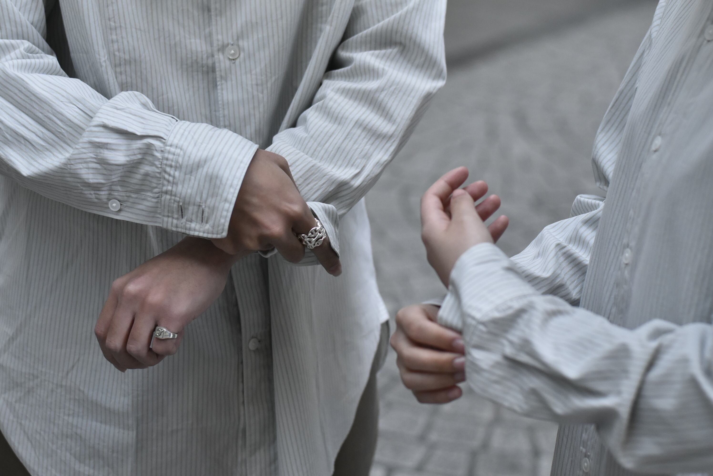 ドレスシャツから採用したラウンドテイルの裾やカフス、