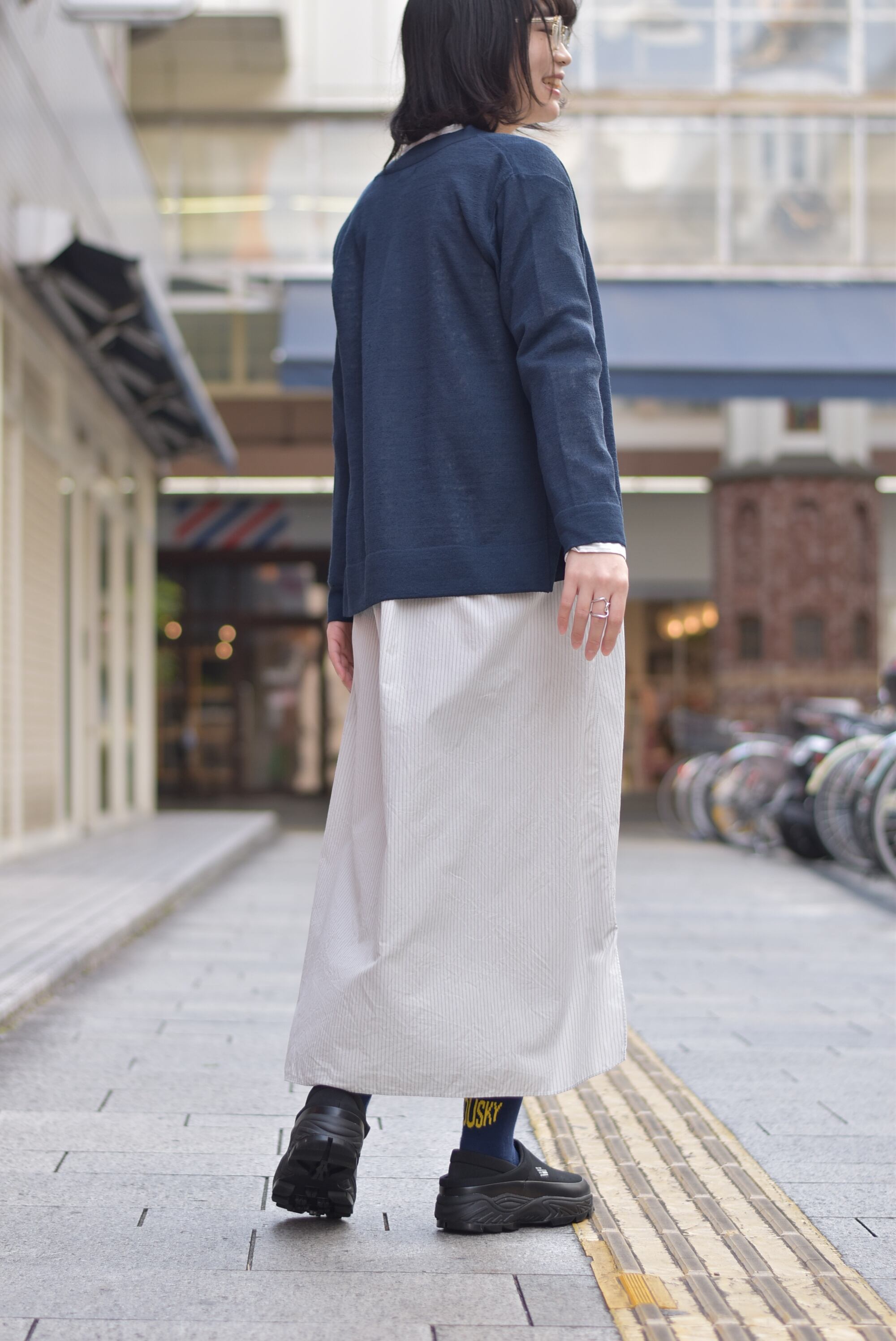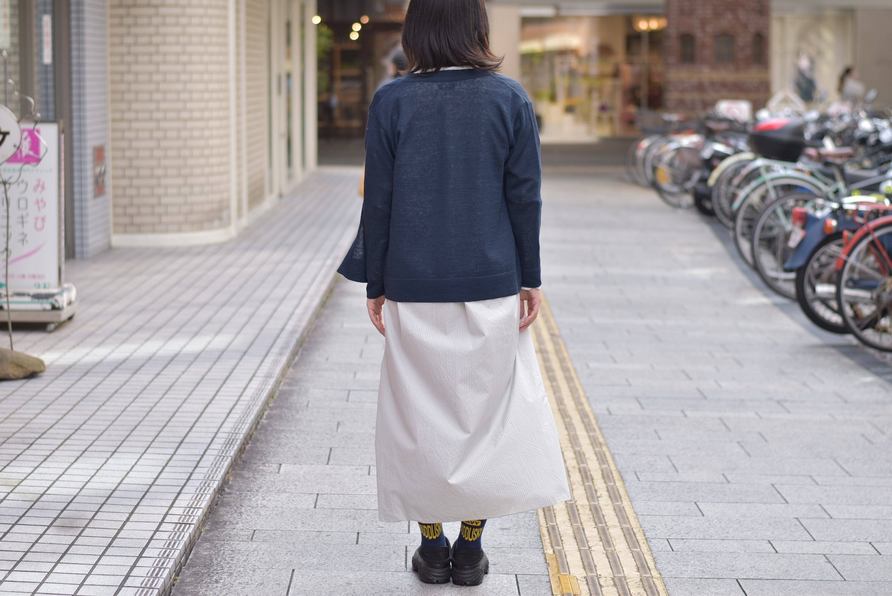 長めの丈感ですが、重たい印象にならないのは、