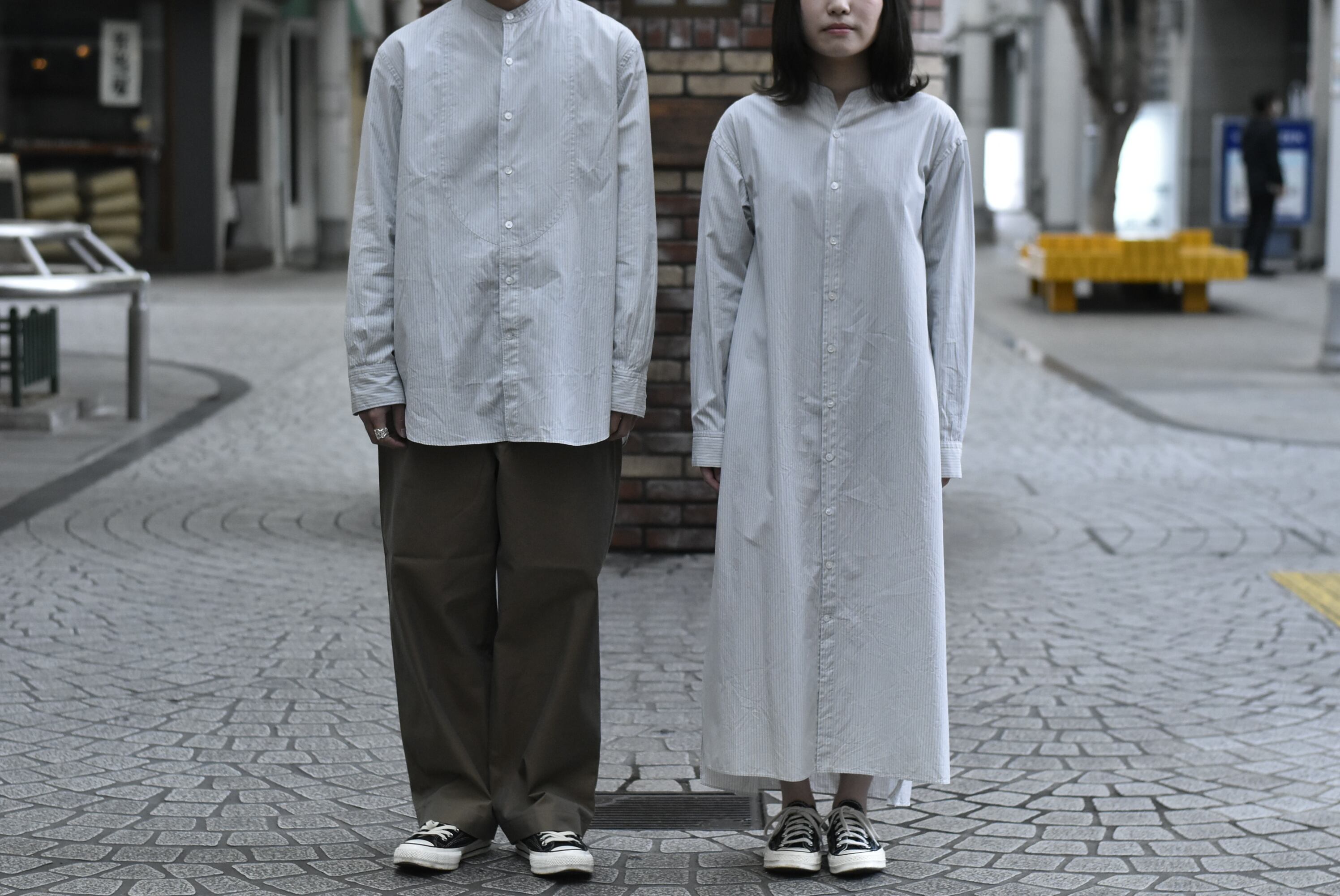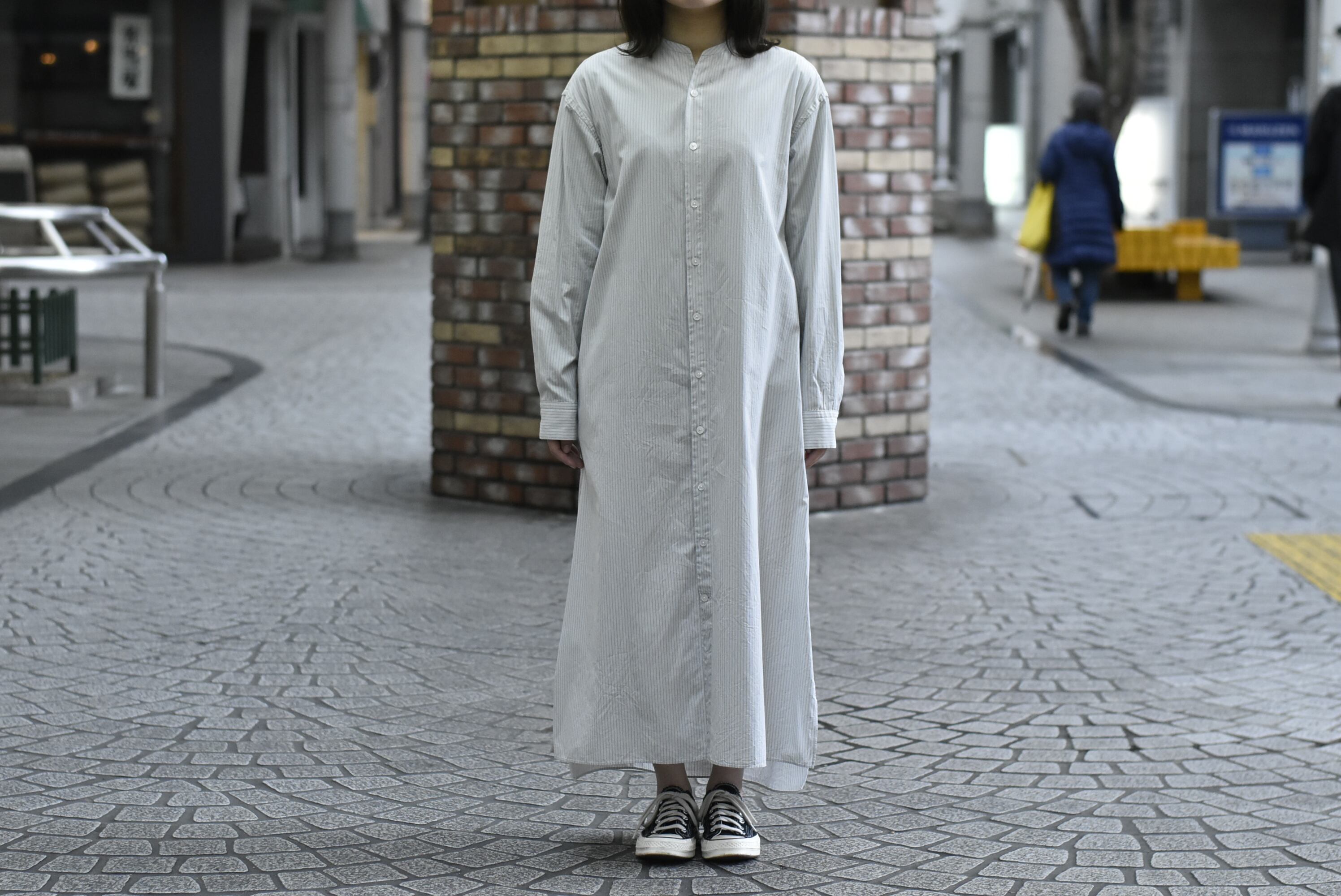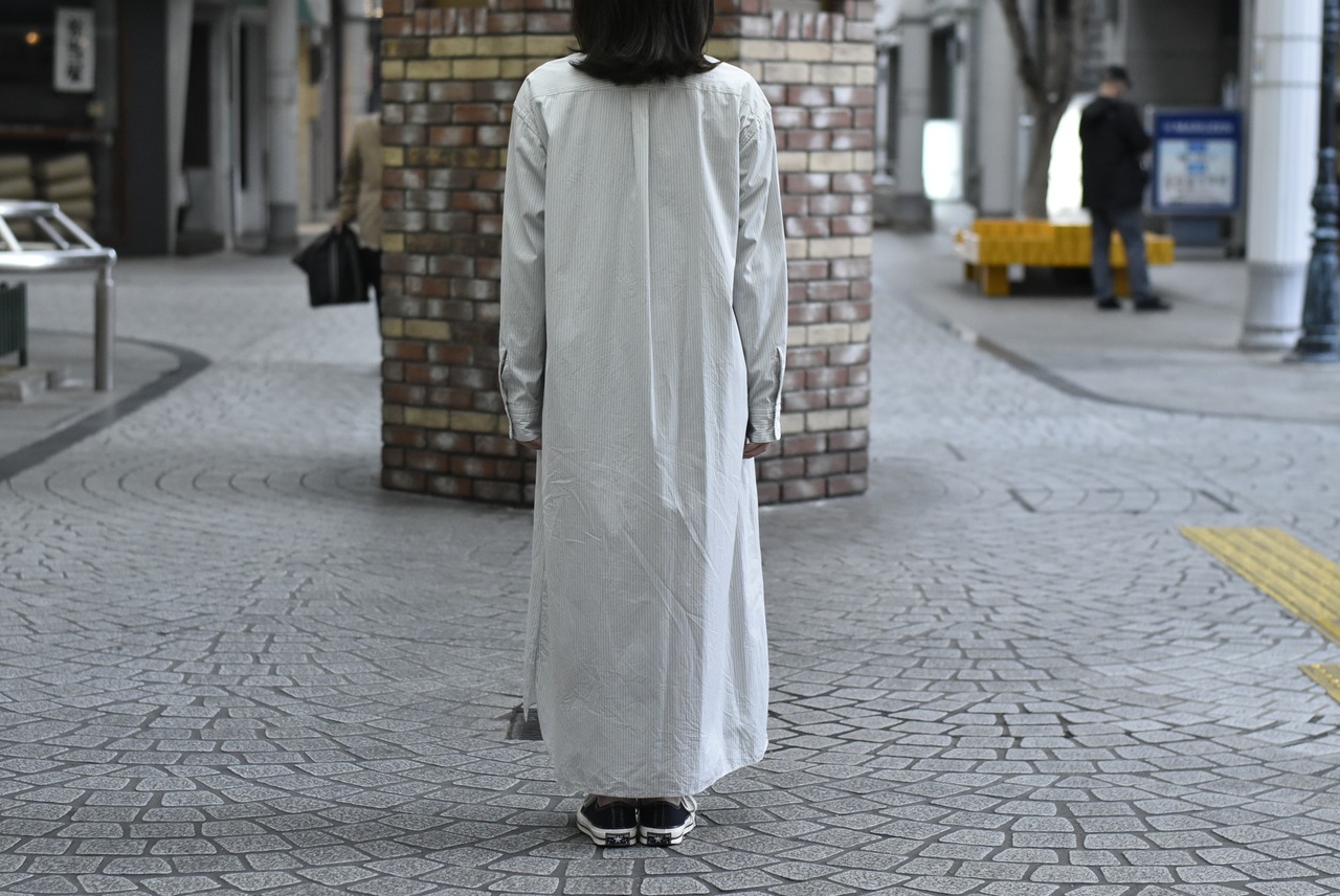 【Phlannèl】Stand Collor Shirt Dress col.stripe
