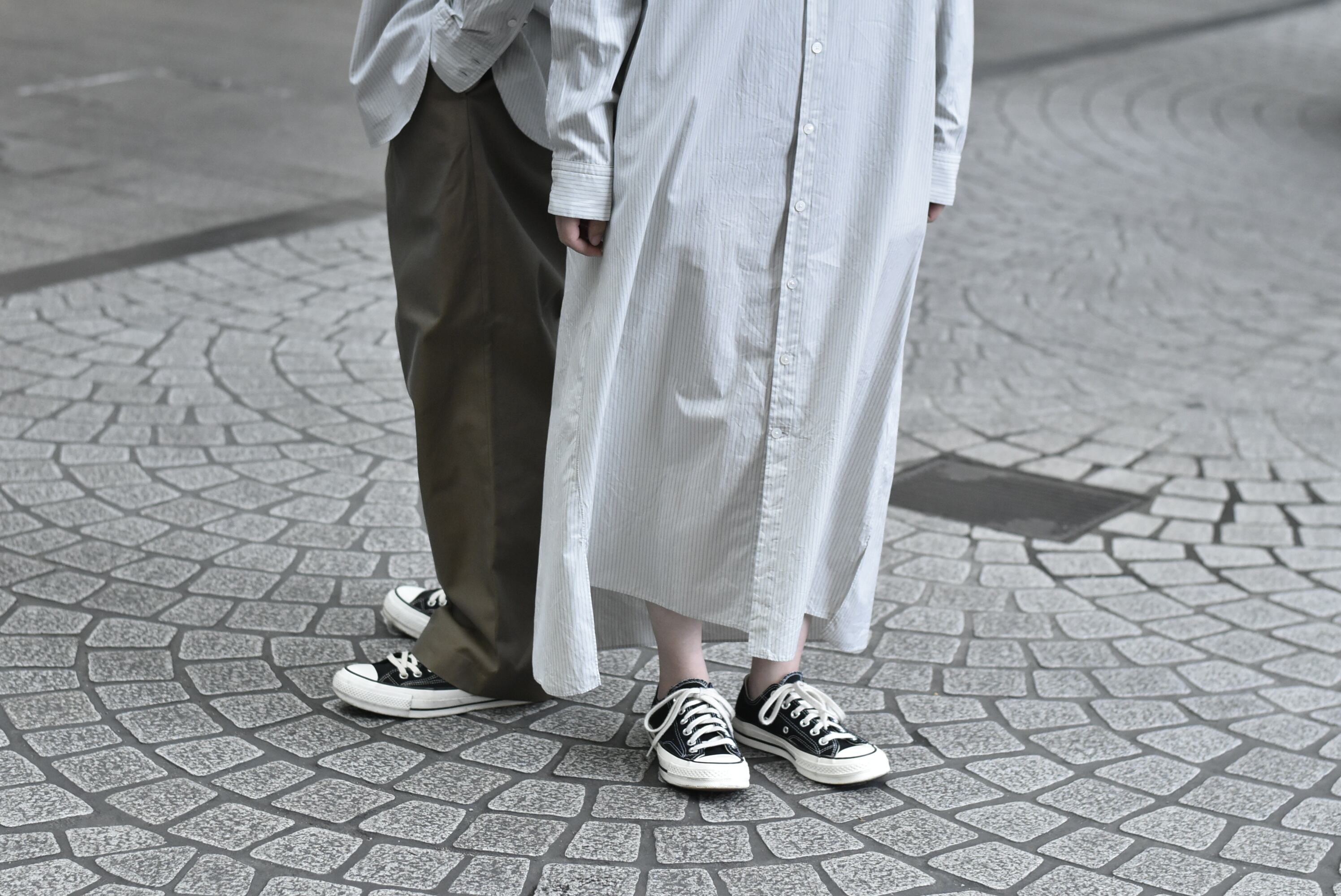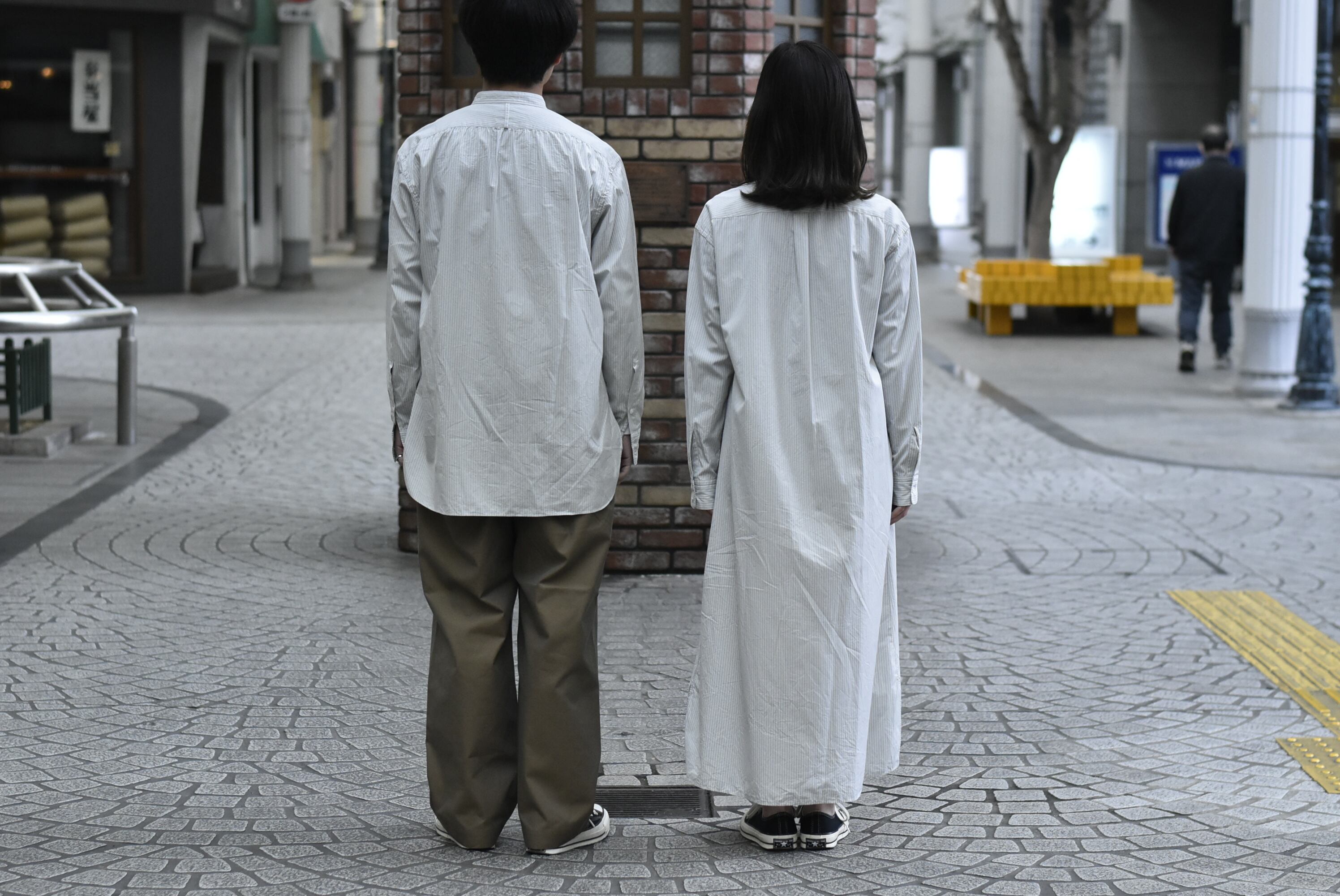 同じ生地を使用したシンプルなシャツワンピースは、