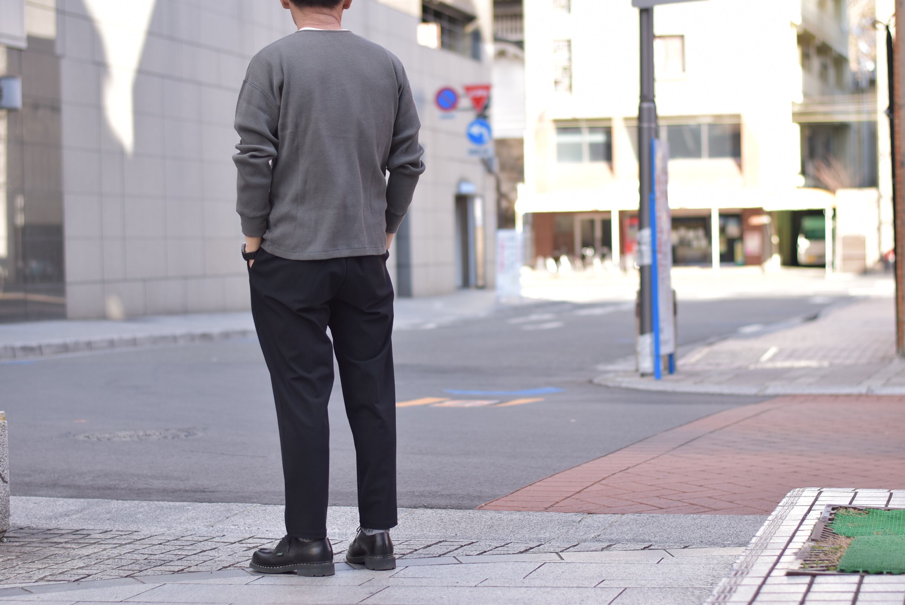 裾に向かってテーパードを効かせたスラックスタイプを採用しています。