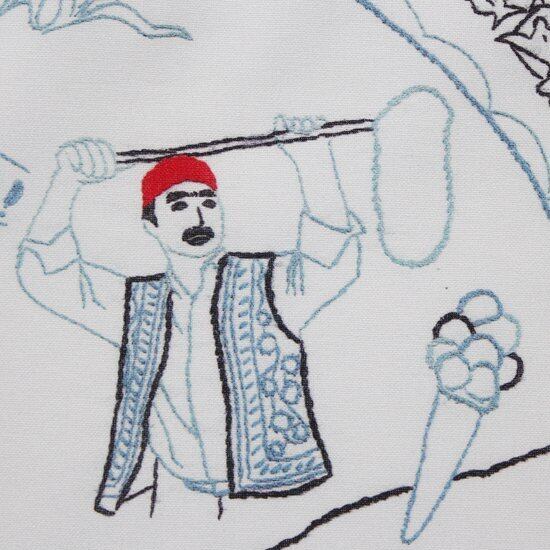 手刺繍を施したものをプリントしているのは