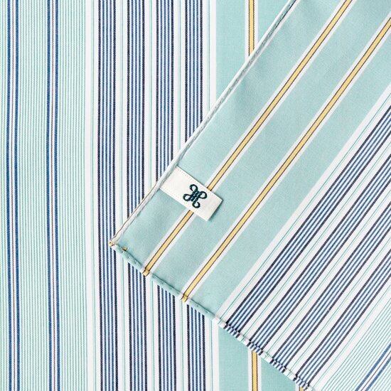 いろいろなストライプが組み合わさっている楽しいハンカチ。