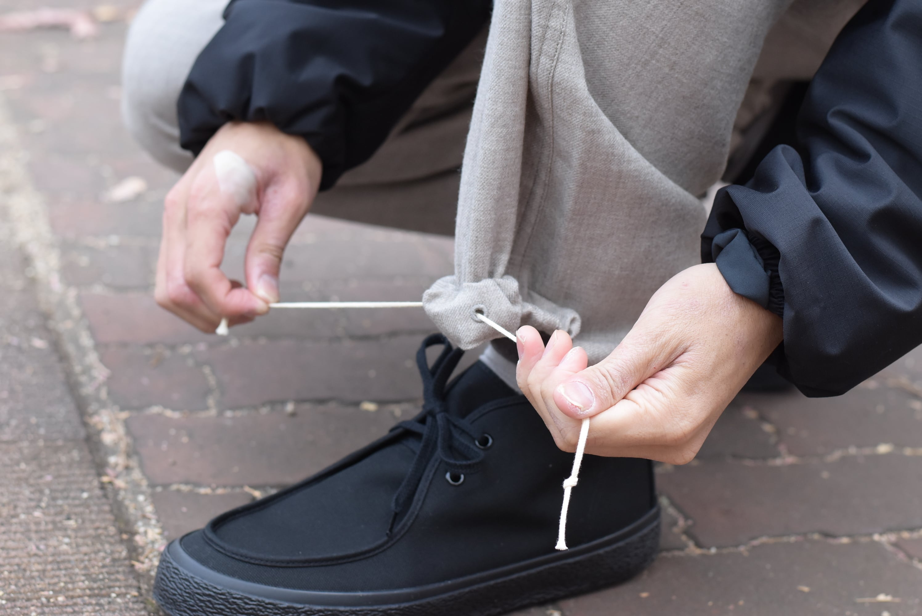 裾口にはドローコードが付いておりますので