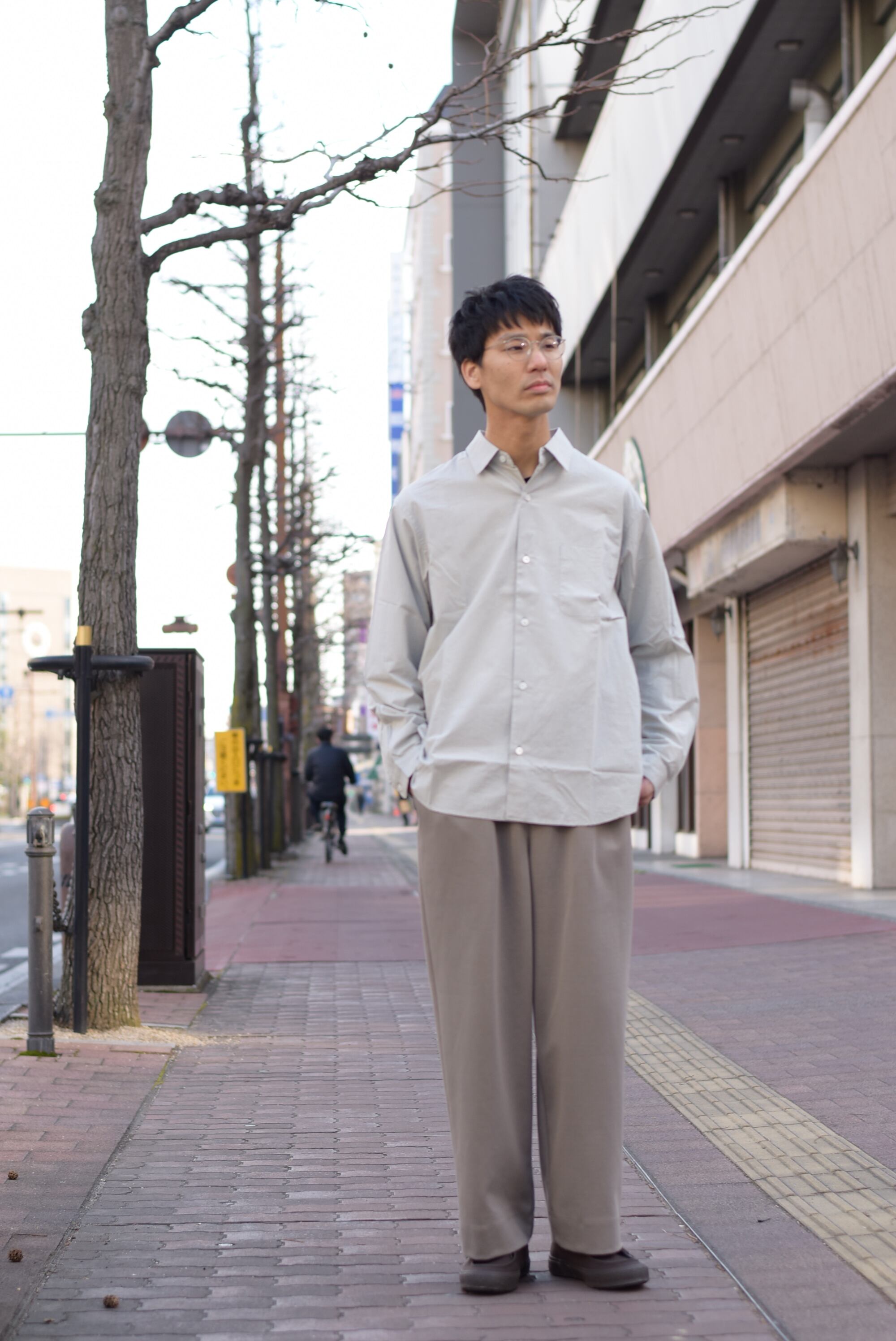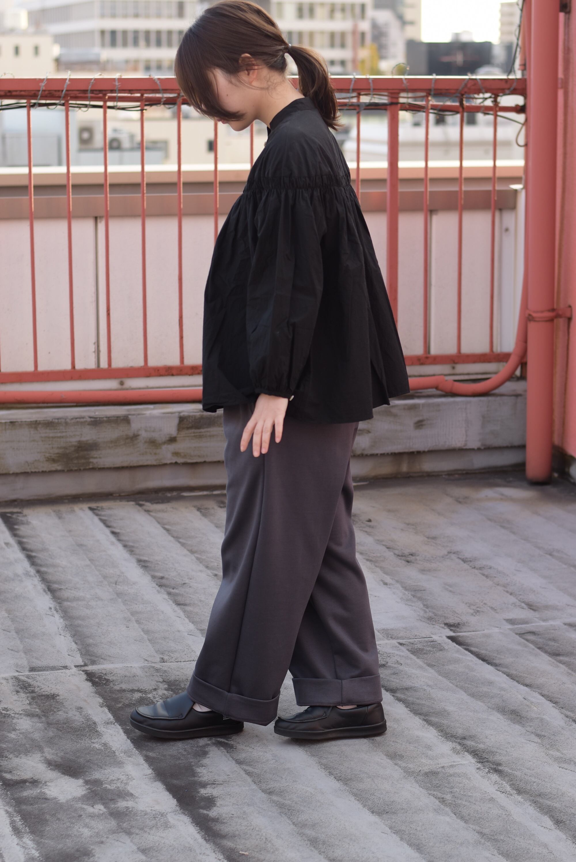腰周りから裾にかけてたっぷりとゆとりをとったワイドシルエットですが、