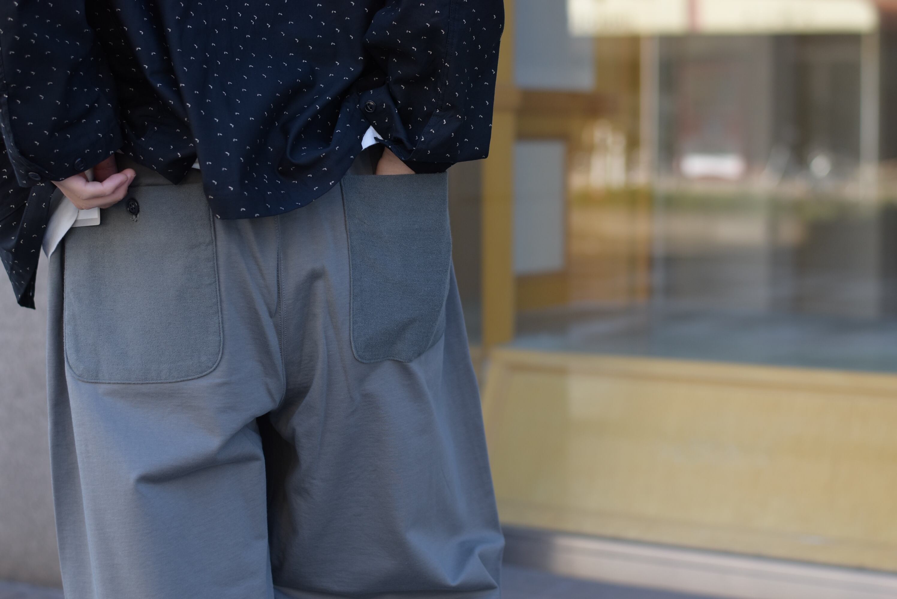 後ろのパッチポケットにあえて生地の裏面を使用し、