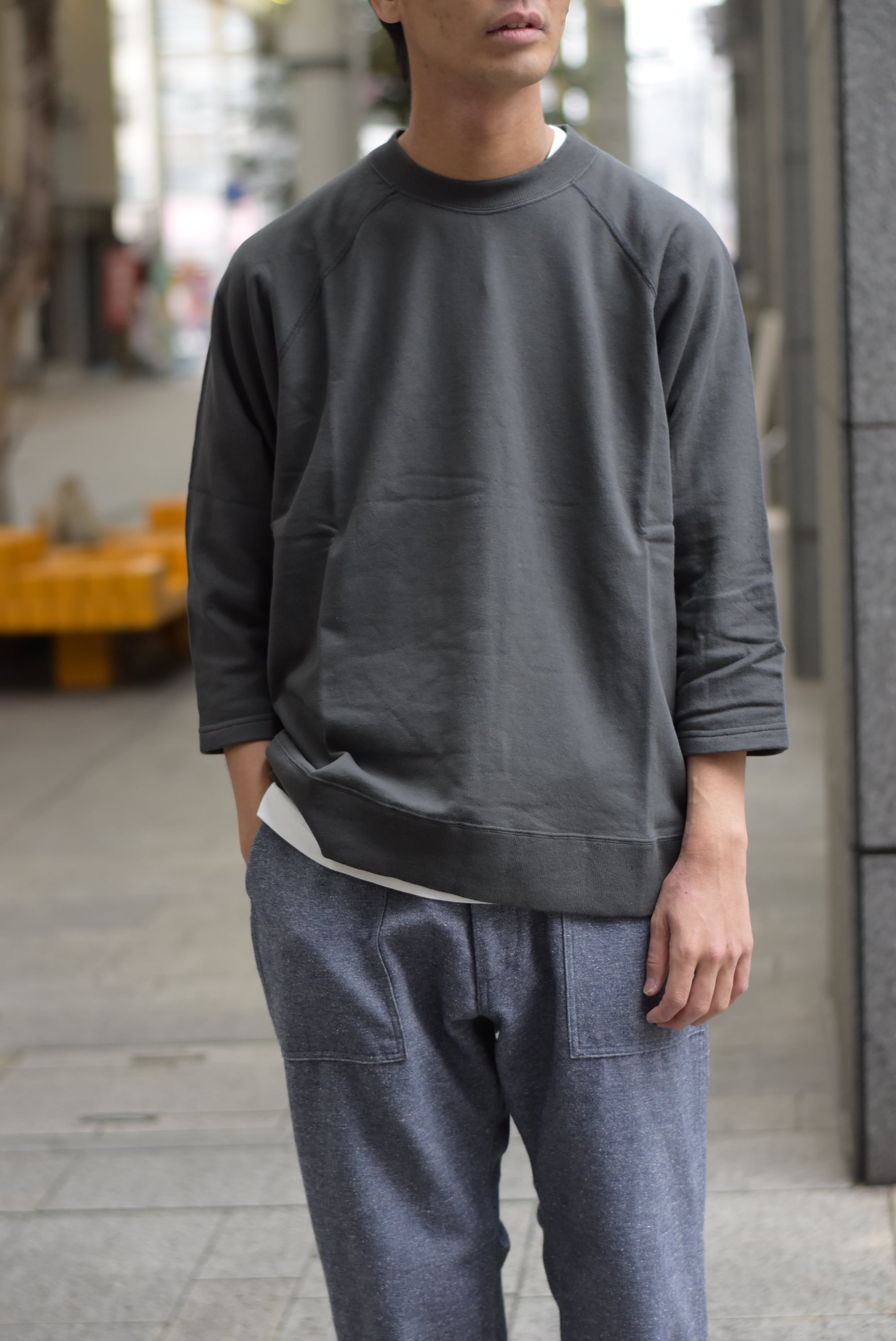 軽いミニ裏毛を使用したラグランスリーブのプルオーバー。