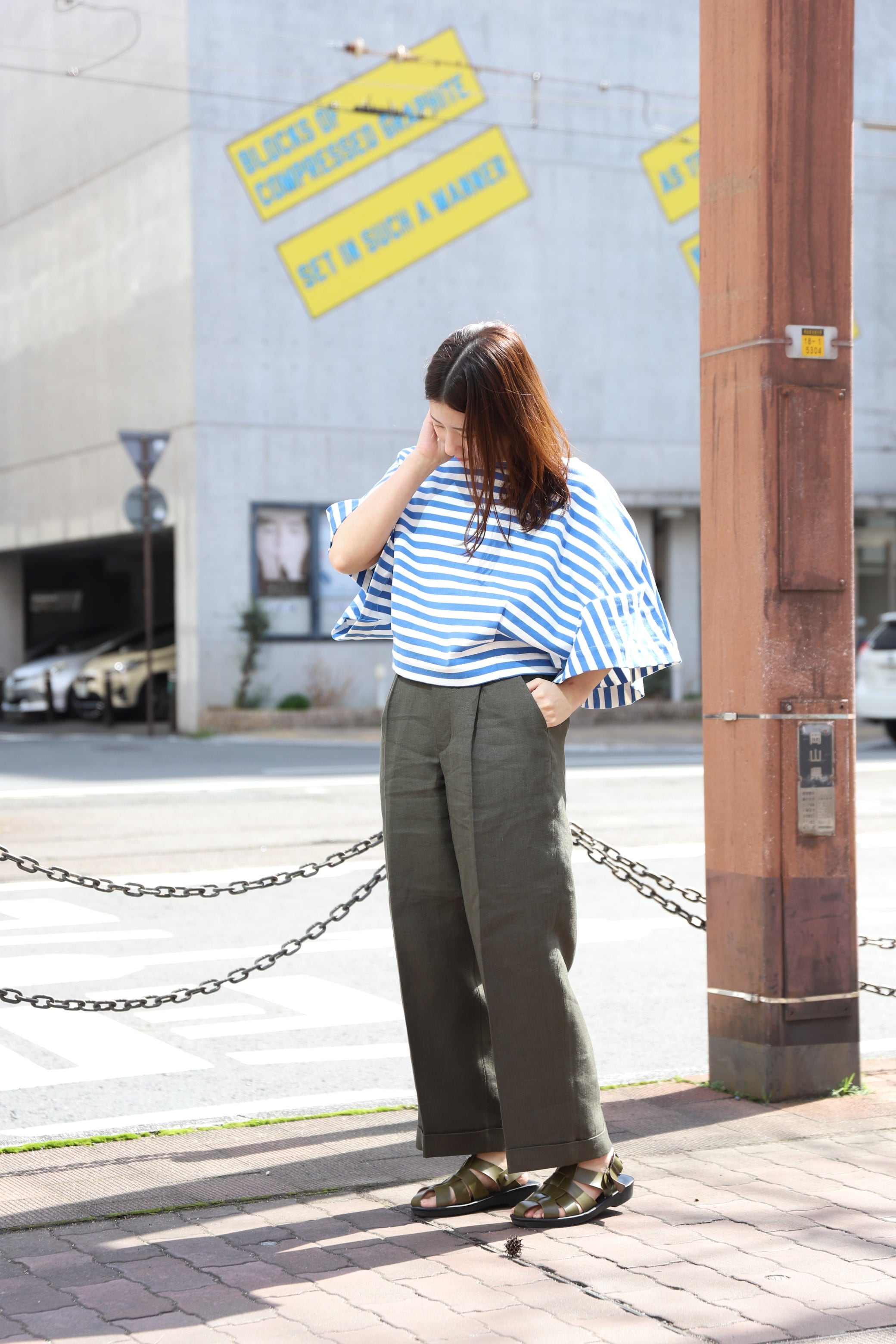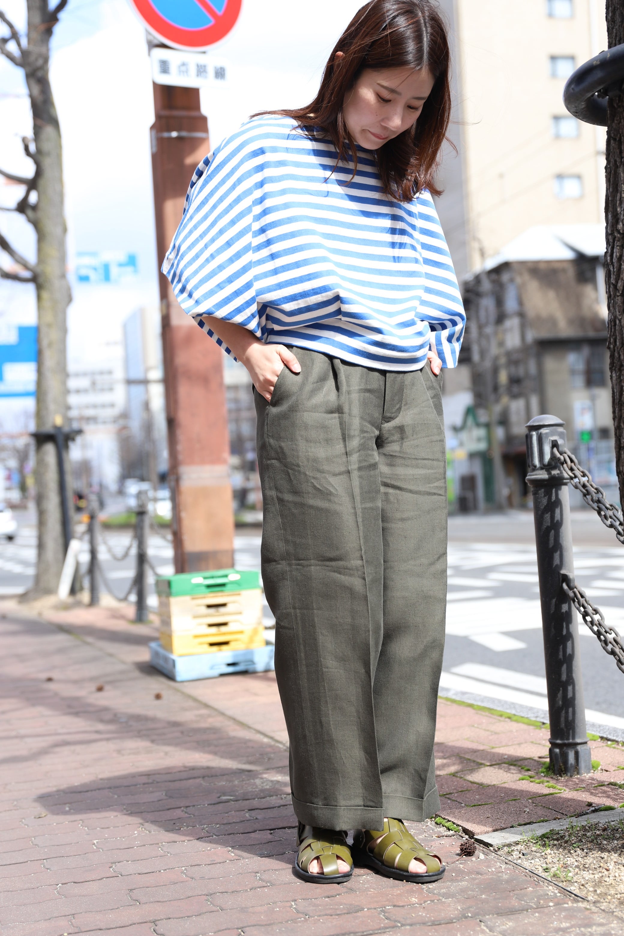 セミフレアワイドパンツ。