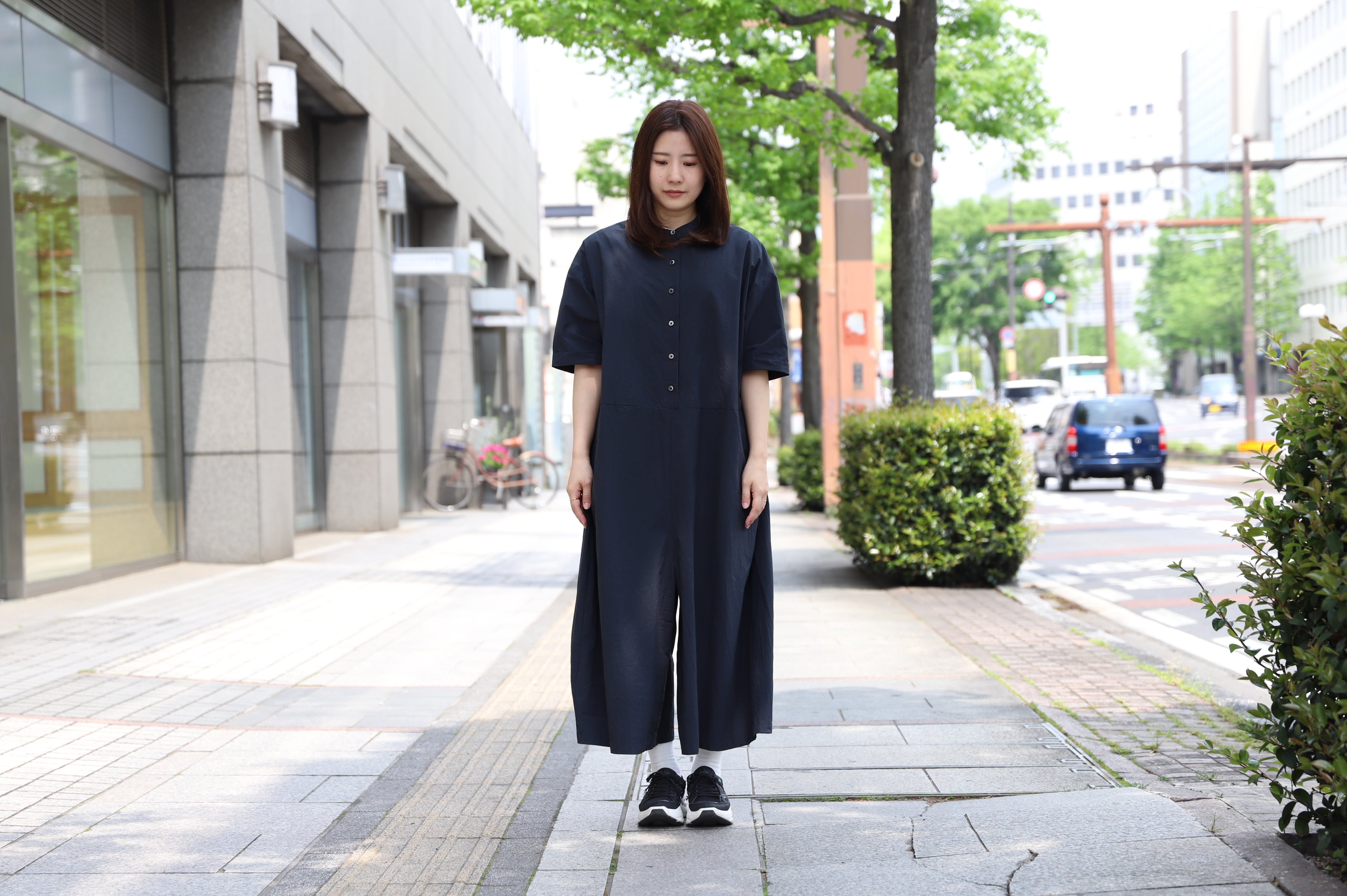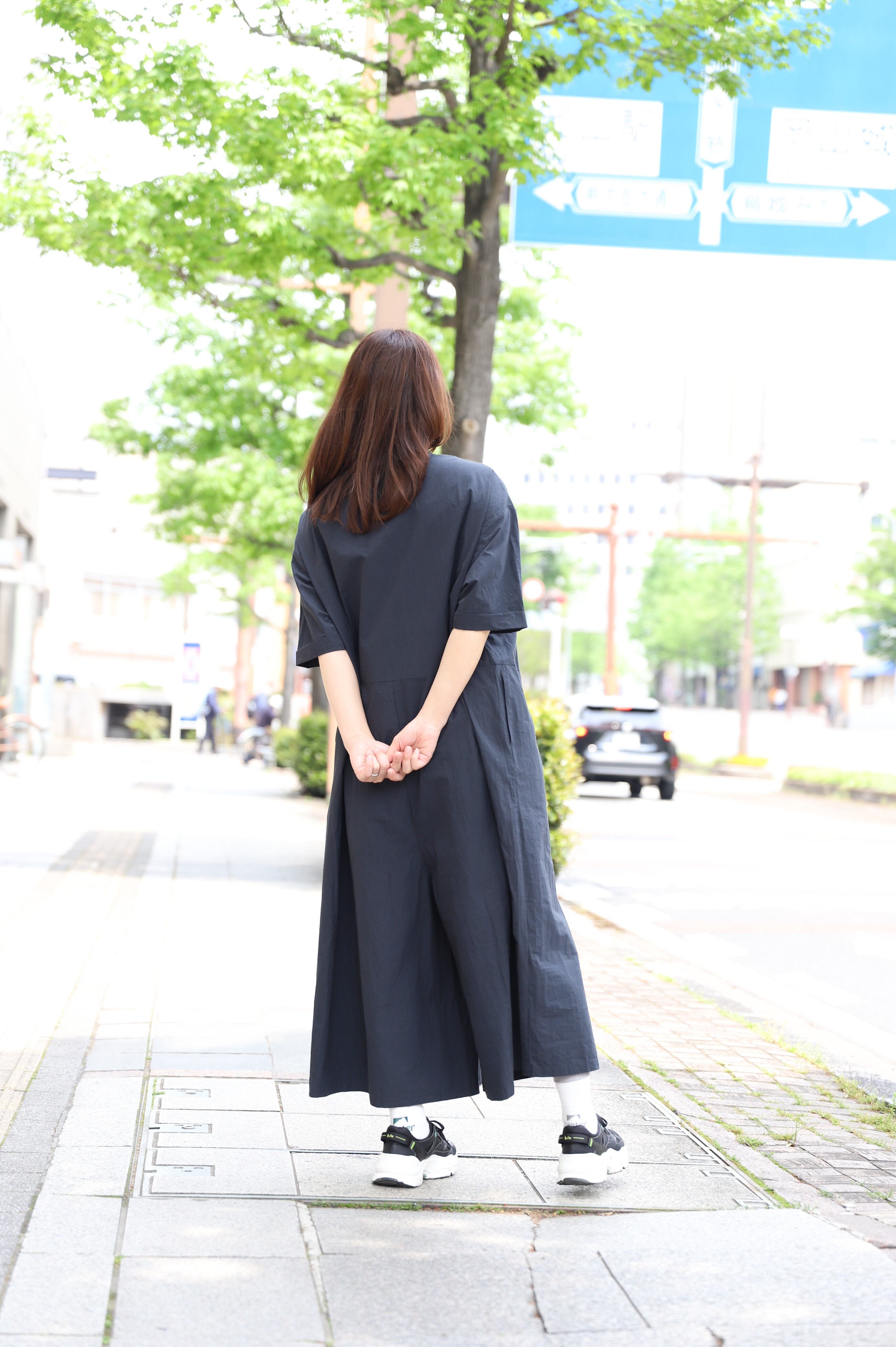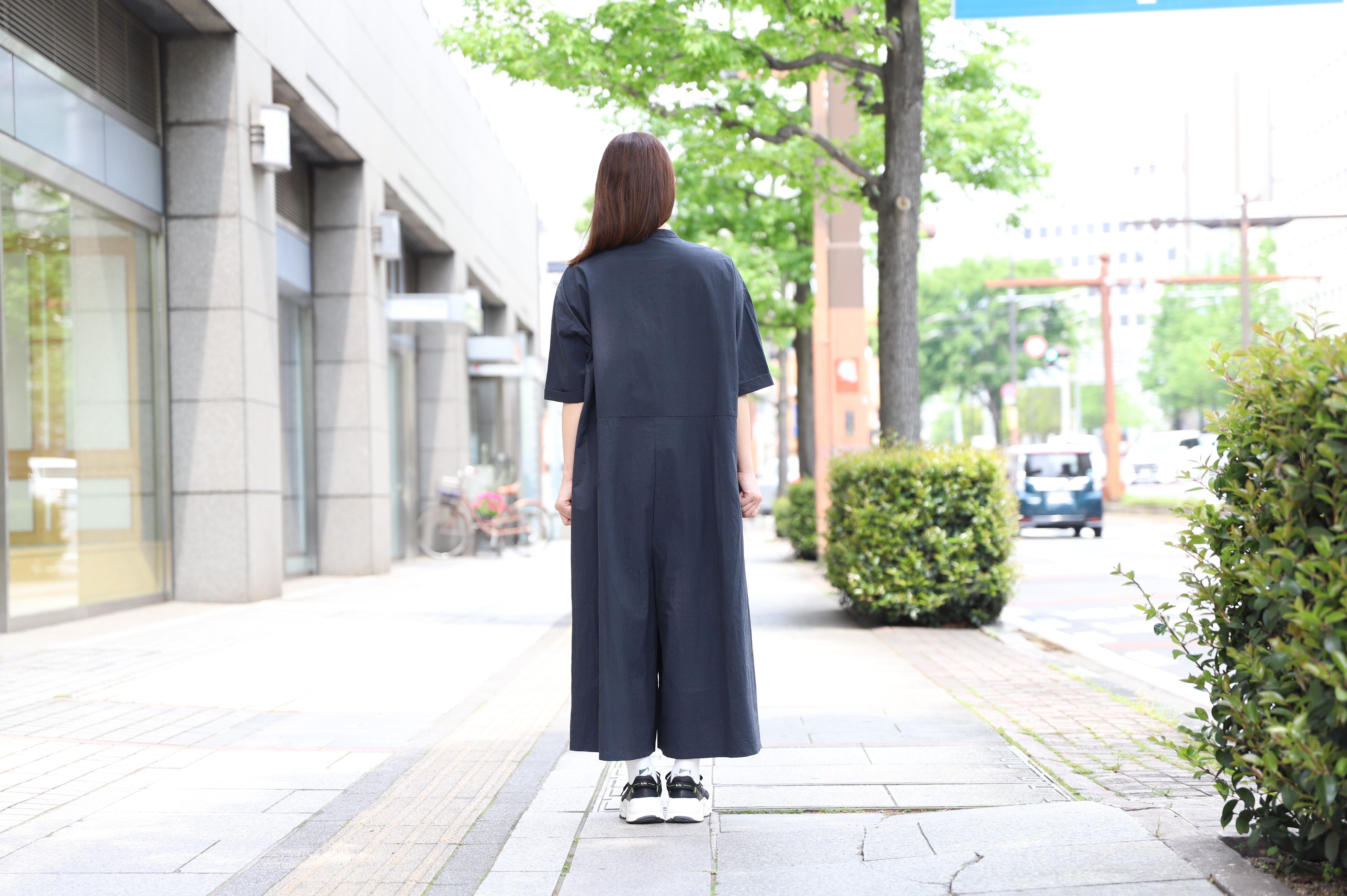 カジュアル感を抑えた、大人な雰囲気のオールインワン。