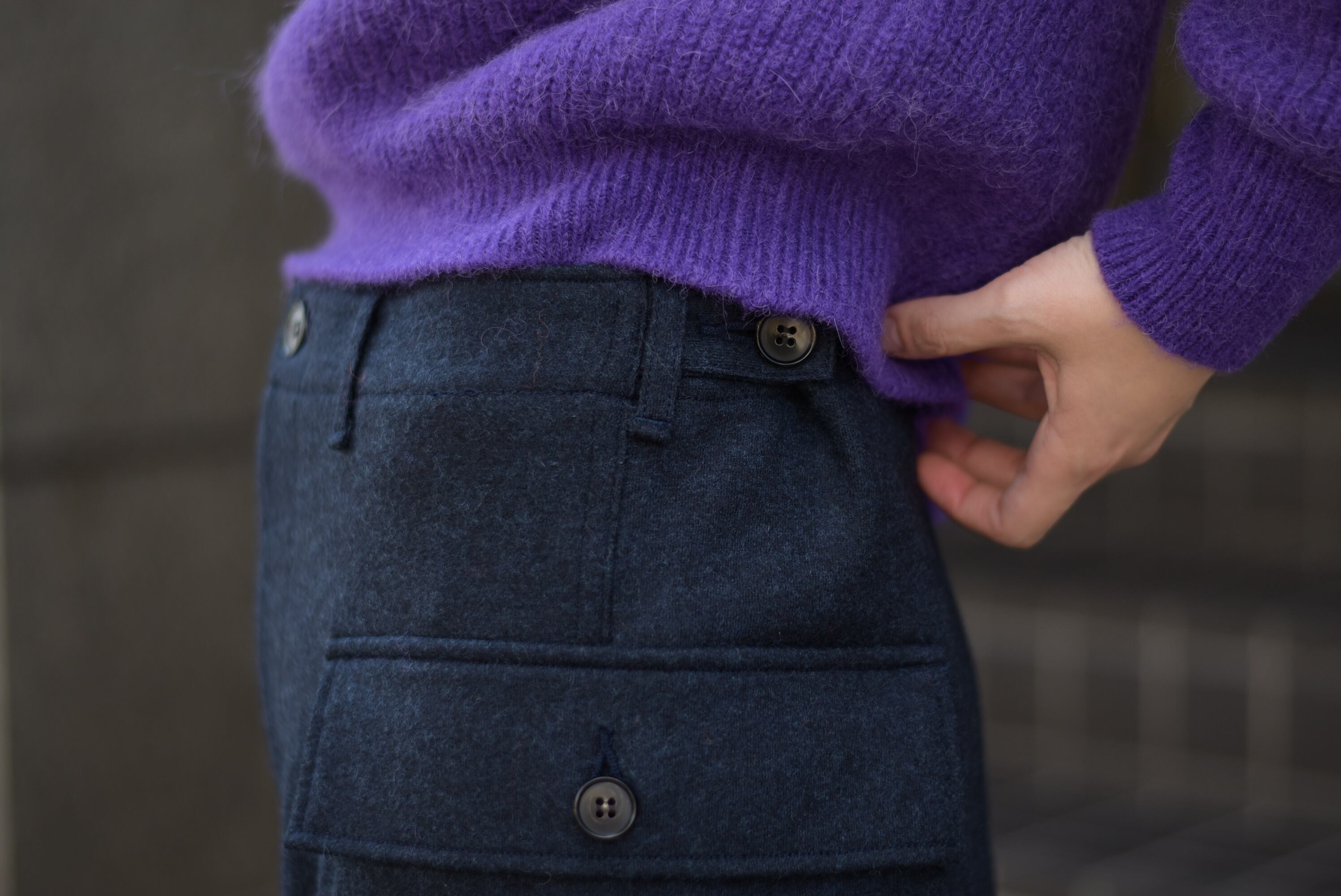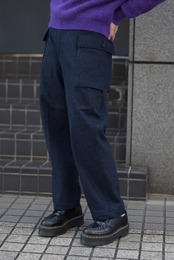 上質なウール100%のカットメルトン素材を使用したカーゴパンツ。