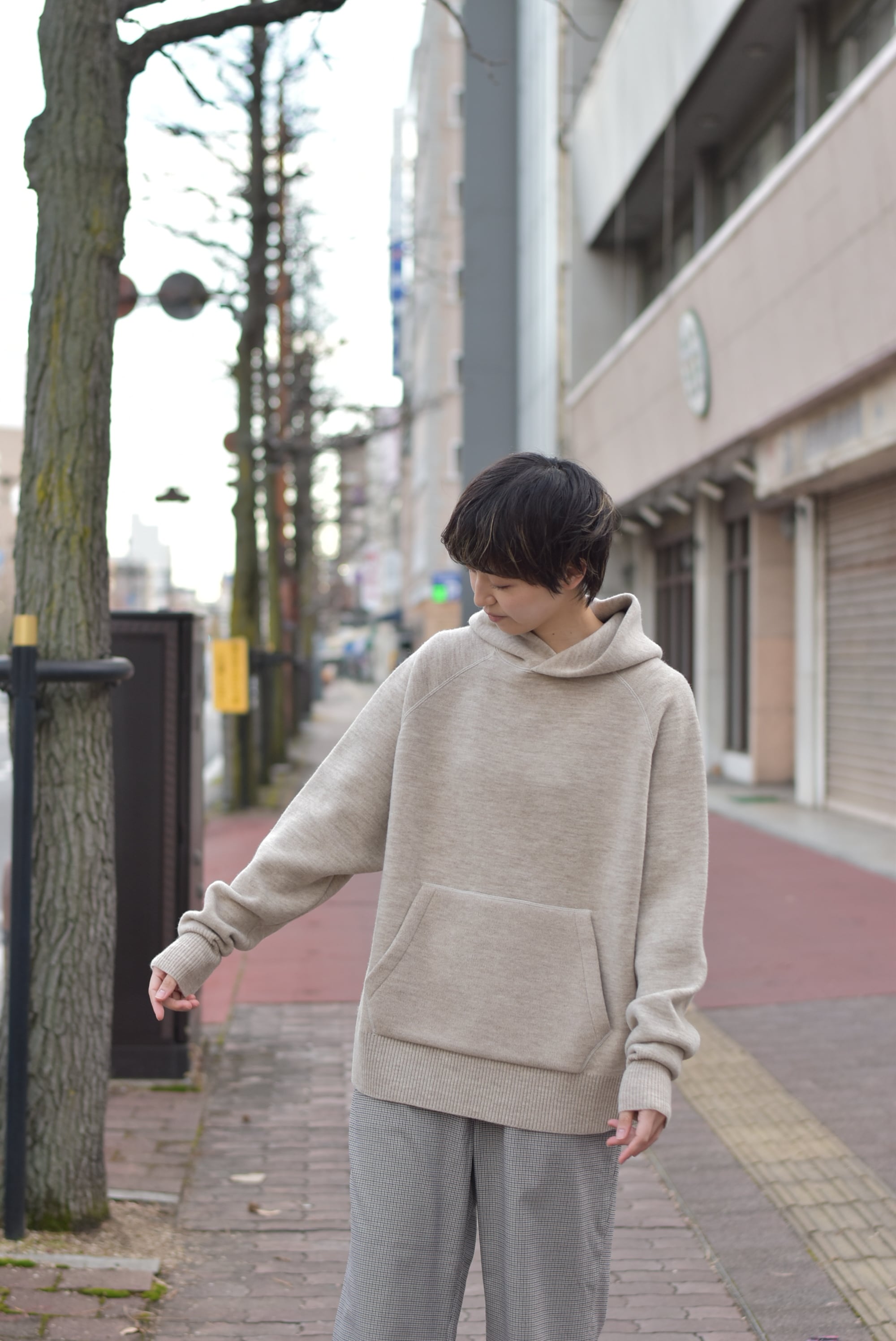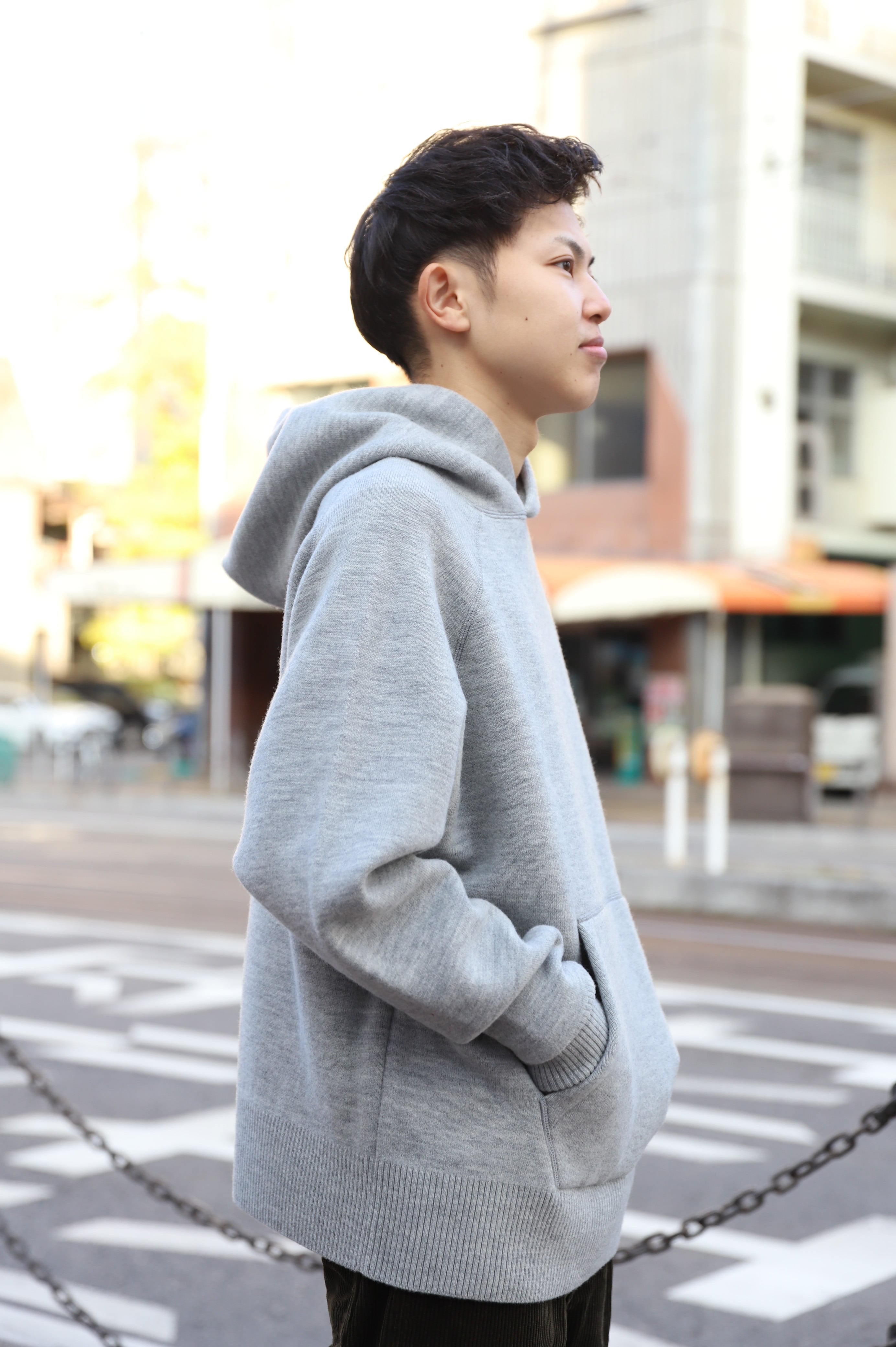 肉厚でソフトな、カットソー調のニットプルパーカー。